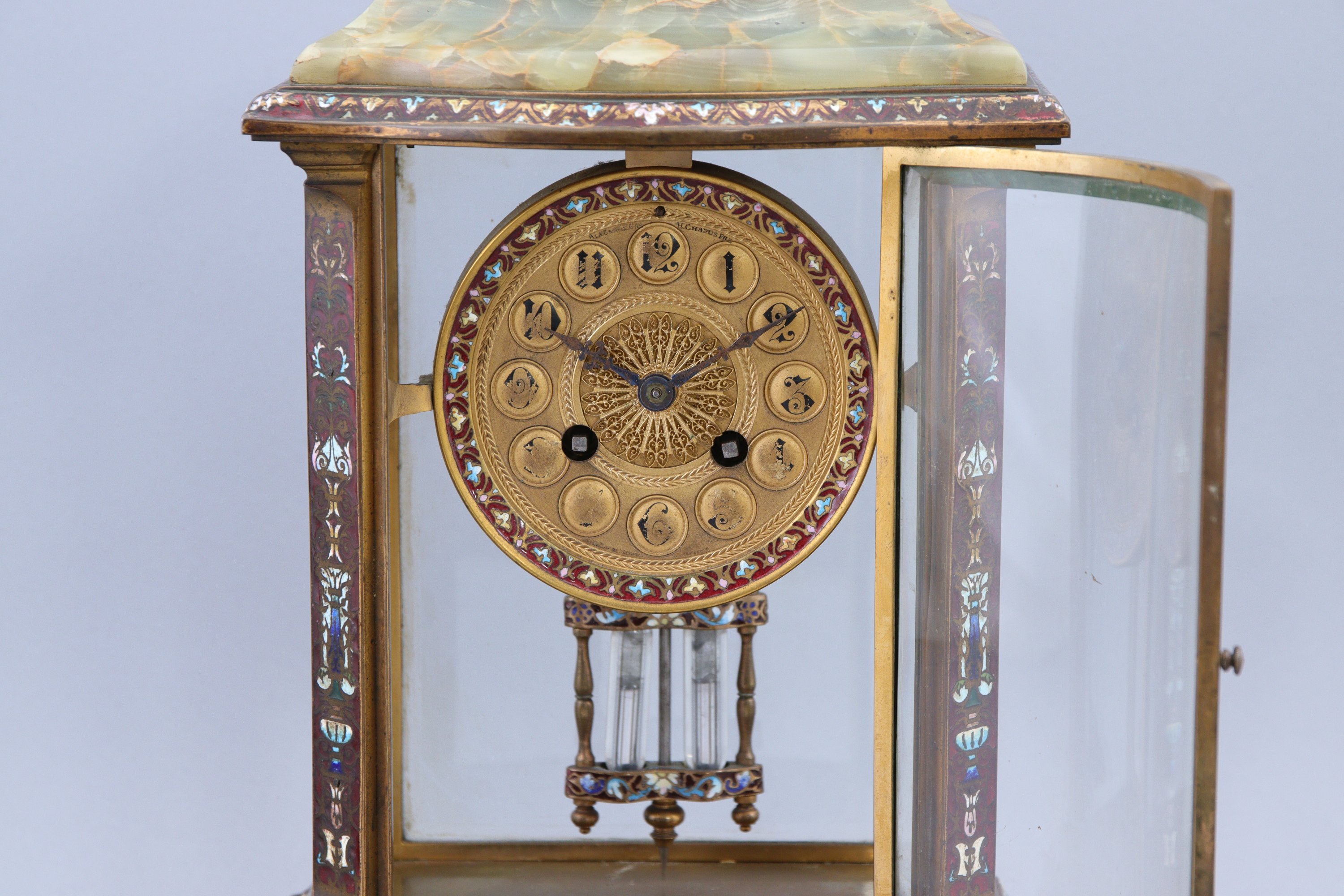 - La pendule de forme cage à la façade mouvementée présente une doucine en partie supérieure. Le cadran signé "Chapus" indique les heures en chiffres arabes. Les montants en forme de pilastres stylisés à décor de rinceaux. Quatre pieds patins. Suspension Brocot avec balancier au mercure. La platine signée "A la gerbe d'or / A.Chapus / Paris / Rue de Rivoli 86". Numérotée "2448".