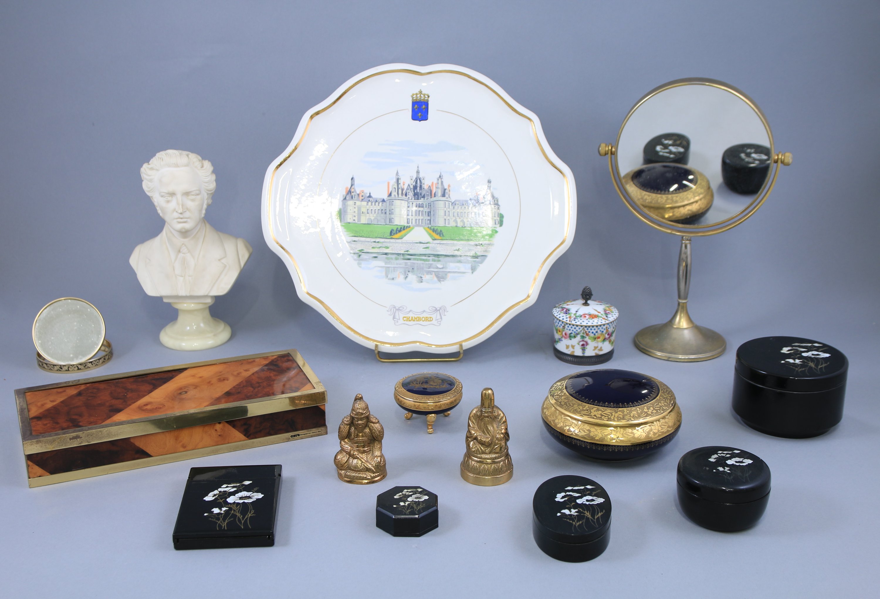 - Petites boites en porcelaine de Limoges et une portant une marque apocryphe de la manufacture de Sèvres.