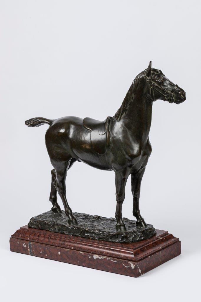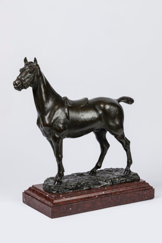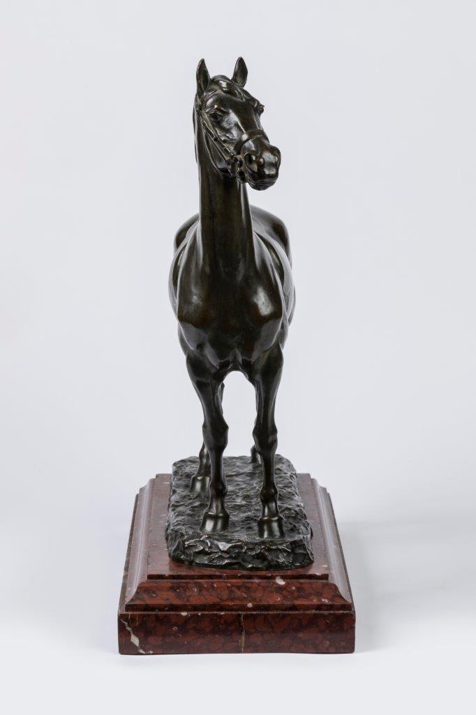 Godefroid Devreese. A ca. 1892 bronze sculpture of a stallion. Signed.