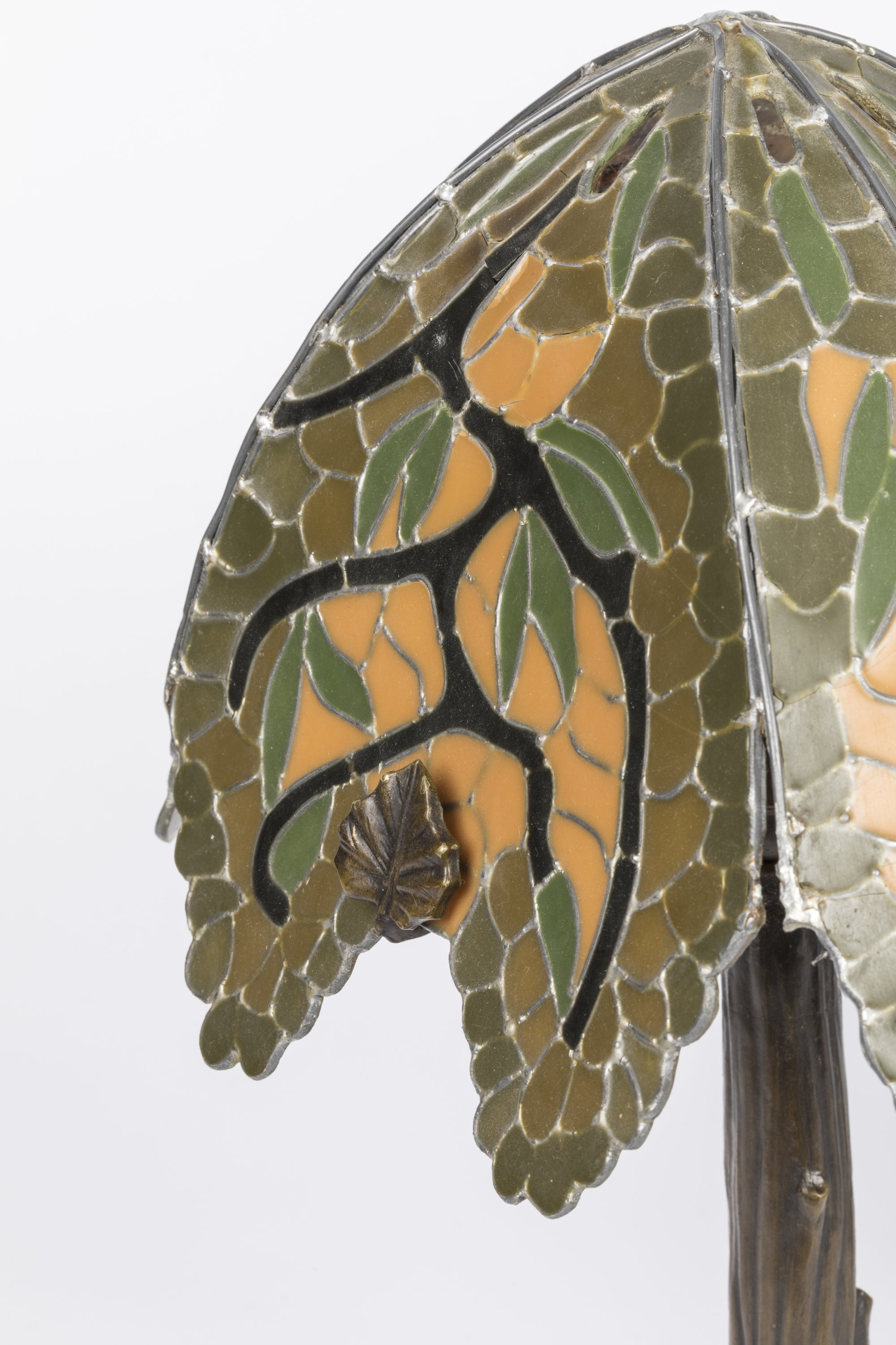 En forme de tronc d'arbre, l'abat-jours formant un feuillage automnal.