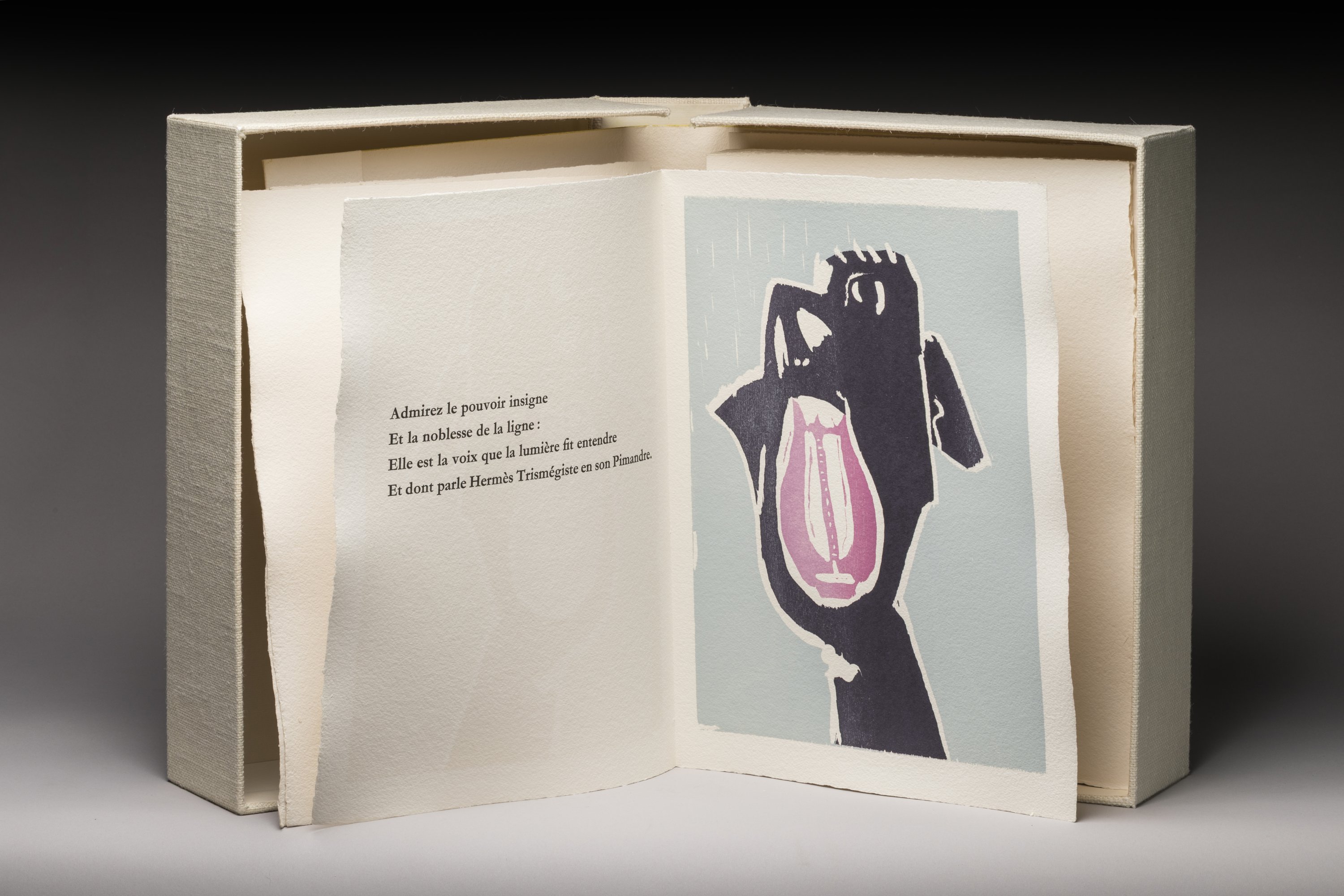 In-folio (390 x 288 mm). En feuilles. Couvertures jaunes, imprimées et rempliées. Emboîtage de l'éditeur en toile blanche. Tirage à 230 exemplaires seulement, tous sur papier d'Auvergne. Couvertures et 33 bois originaux en couleur pleine page, dont 4 sur double page. Exemplaire n°39, avec une suite des 33 bois en couleurs dont quatre sur double page et la décomposition des couleurs d'une planche sur pur chiffon Guano.