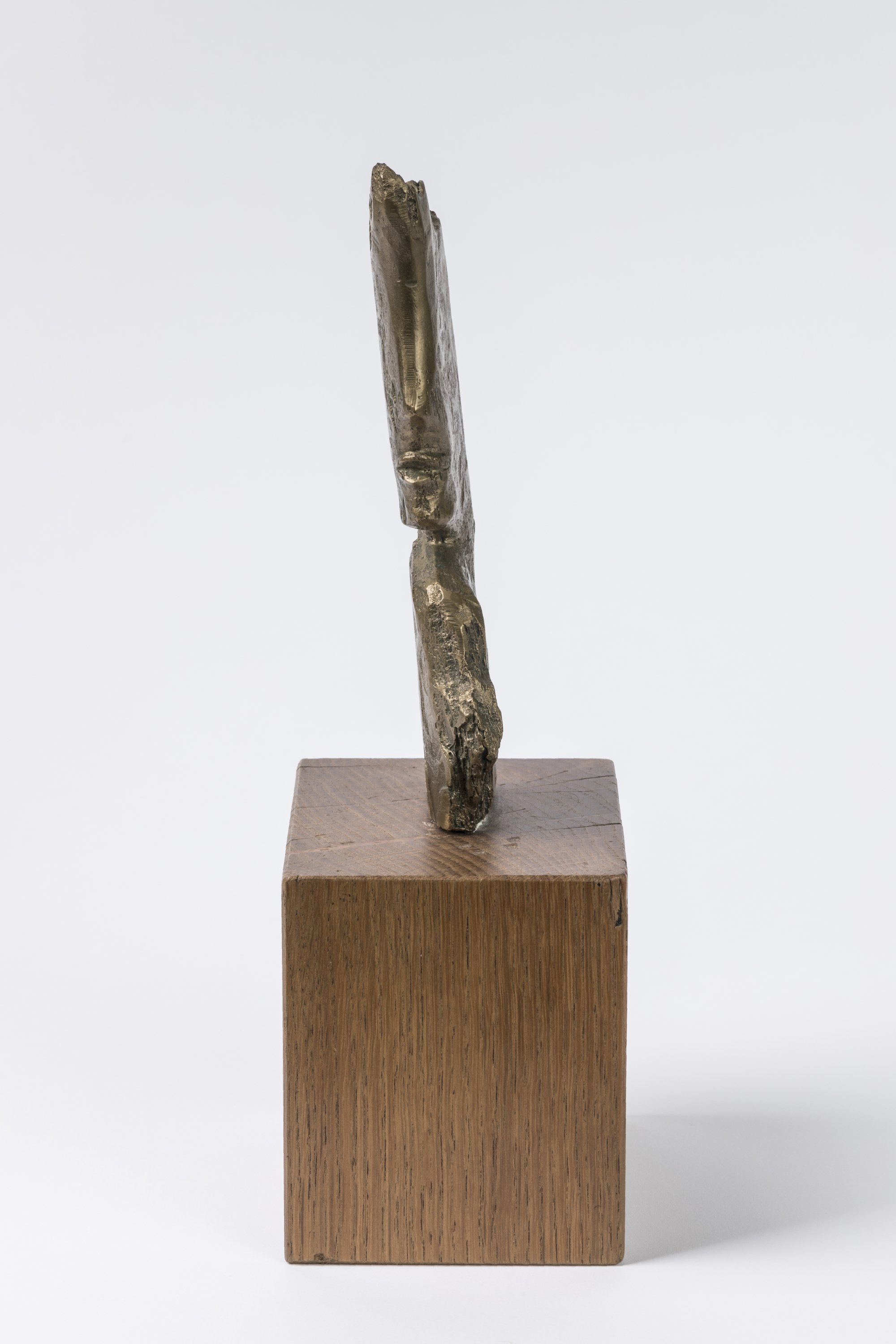 Socle cubique en bois brut. Haut. totale 29 cm.