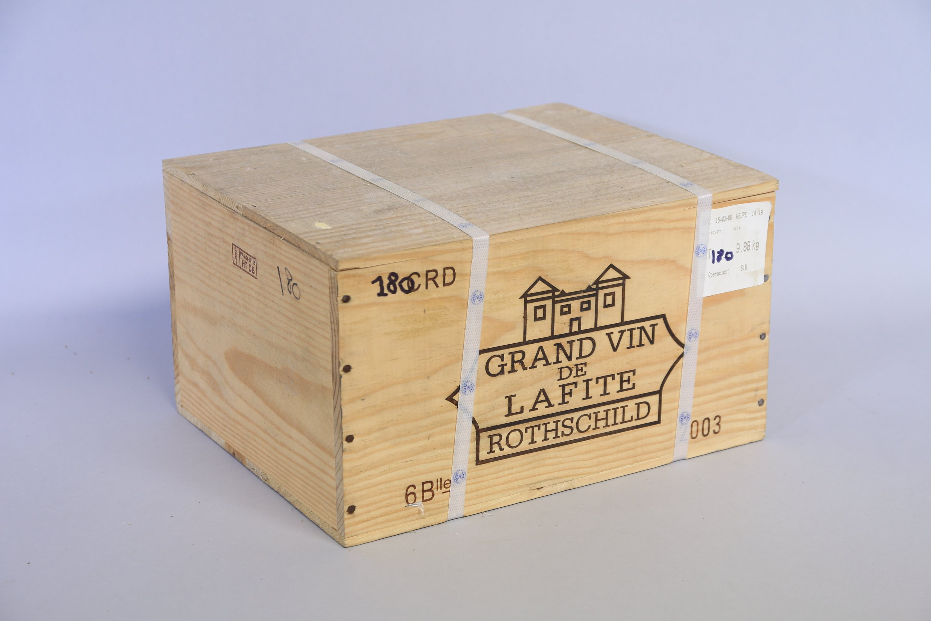 Pauillac, Château Lafite-Rothschild, 1er Grand Cru classé, 2003, 6 bouteilles. Caisse cerclée en bois d'origine (numérotation au feutre).