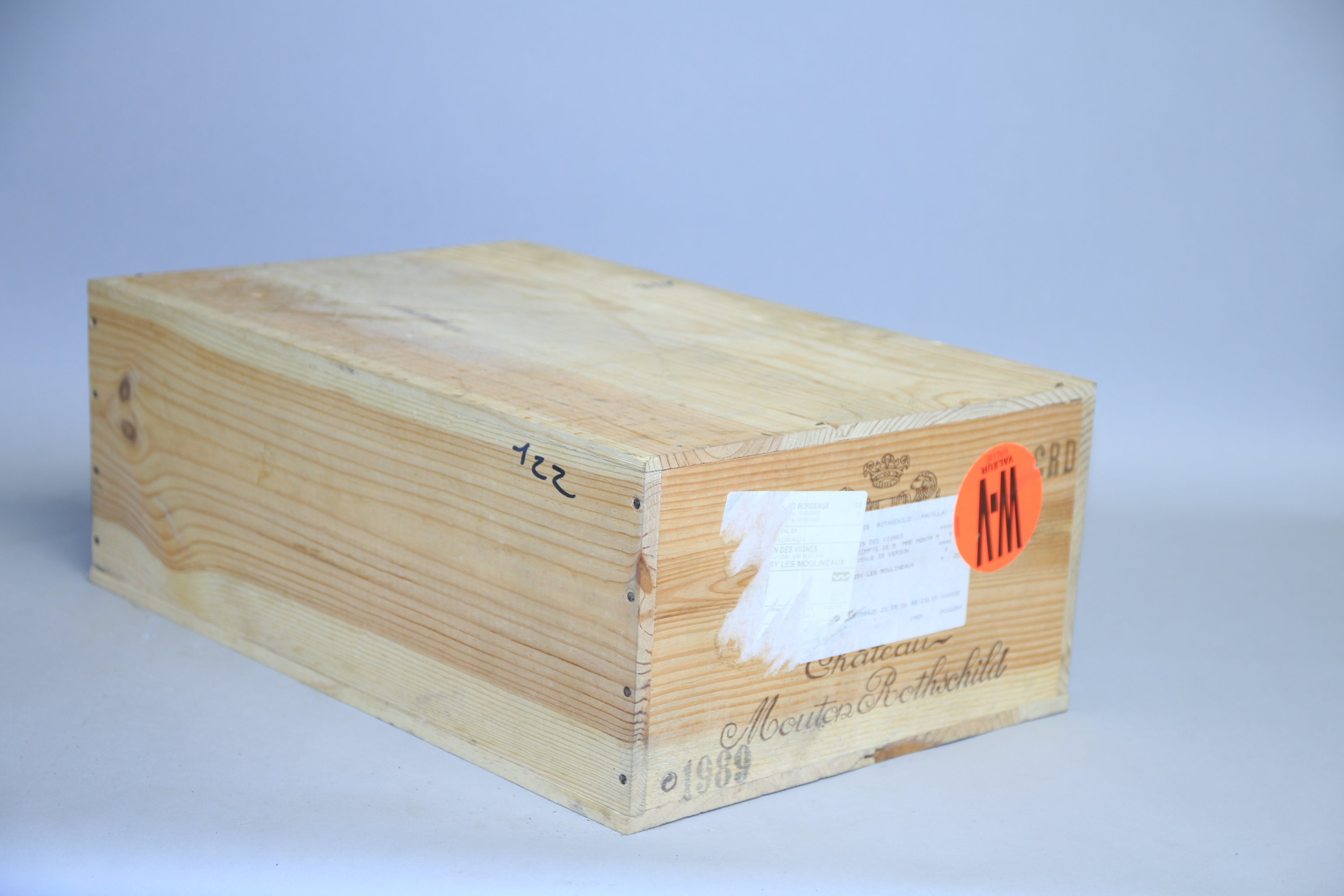 Pauillac, Château Mouton Rothschild, 1er Grand Cru classé, 1989, 12 bouteilles. Caisse en bois d'origine (numérotation au feutre).