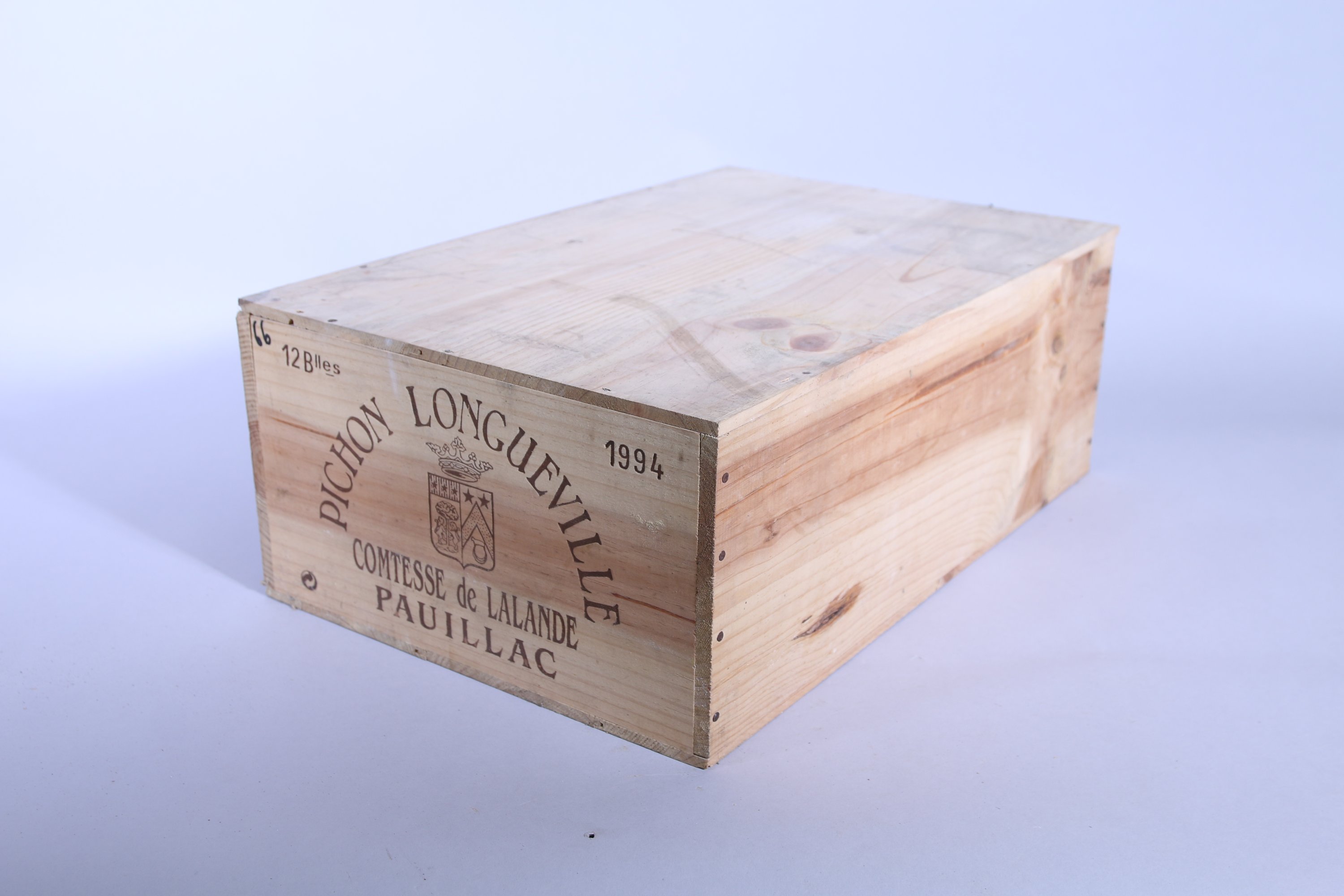 Pauillac, Château Pichon Longueville Comtesse de Lalande, 2ème Grand Cru classé, 1994, 12 bouteilles. Caisse en bois d'origine (numérotation au feutre).