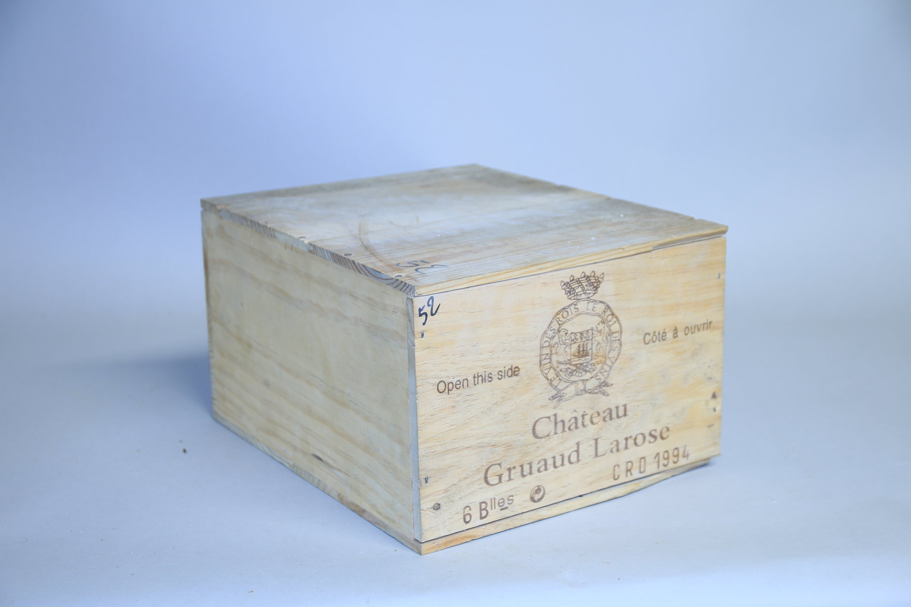 Saint-Julien, Château Gruaud Larose, 2ème Grand Cru classé, 1994, 6 bouteilles. Caisse en bois d'origine (numérotation au feutre).
