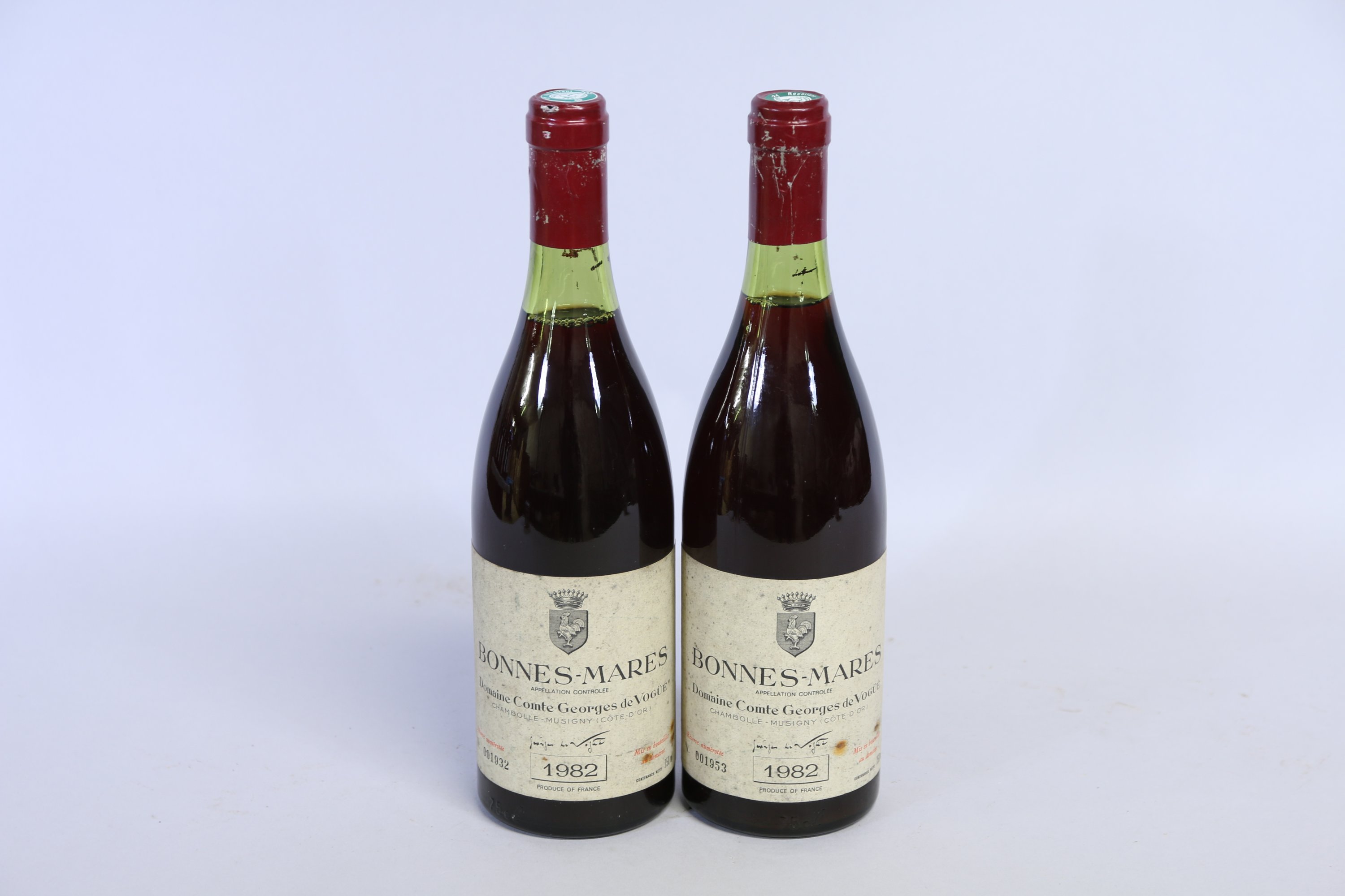 Bonnes-Mares, Domaine Comte Georges de Vogüé, 1982, 2 bouteilles numérotées "001953" et "001932".