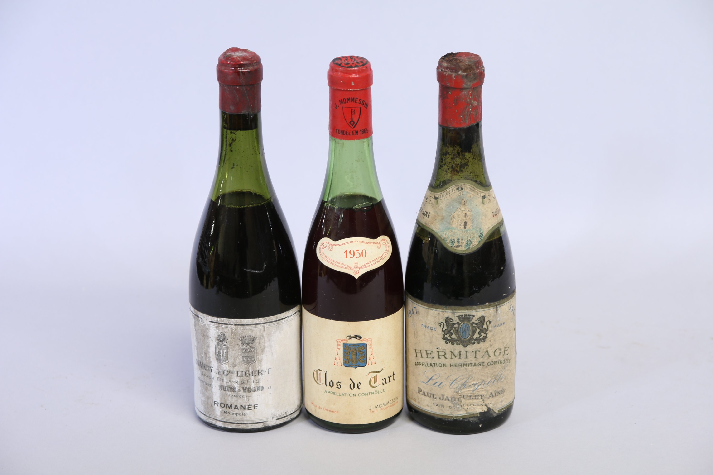 - Clos de Tart, J. Mommession, 1950. Niveau: 4,4 cm. Etiquette: fanée. Capsule: petite déformation.