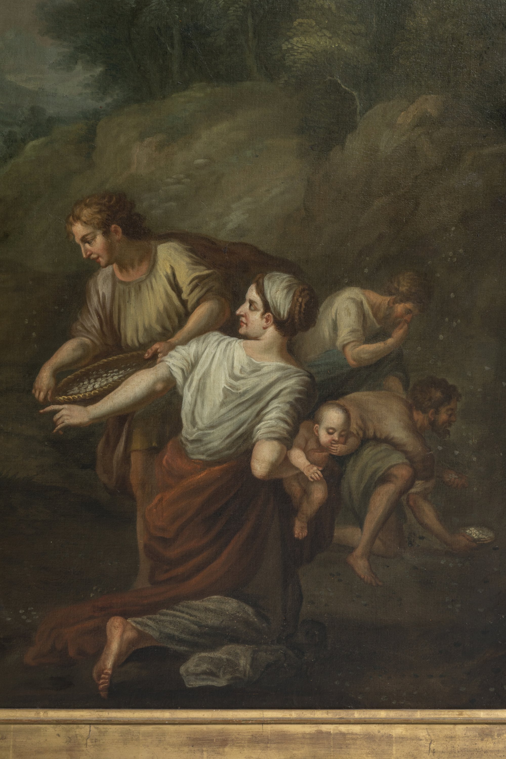 A painting of the harvest of manna after Nicolas Poussin. Oil on canvas. French school ca. 1700.
