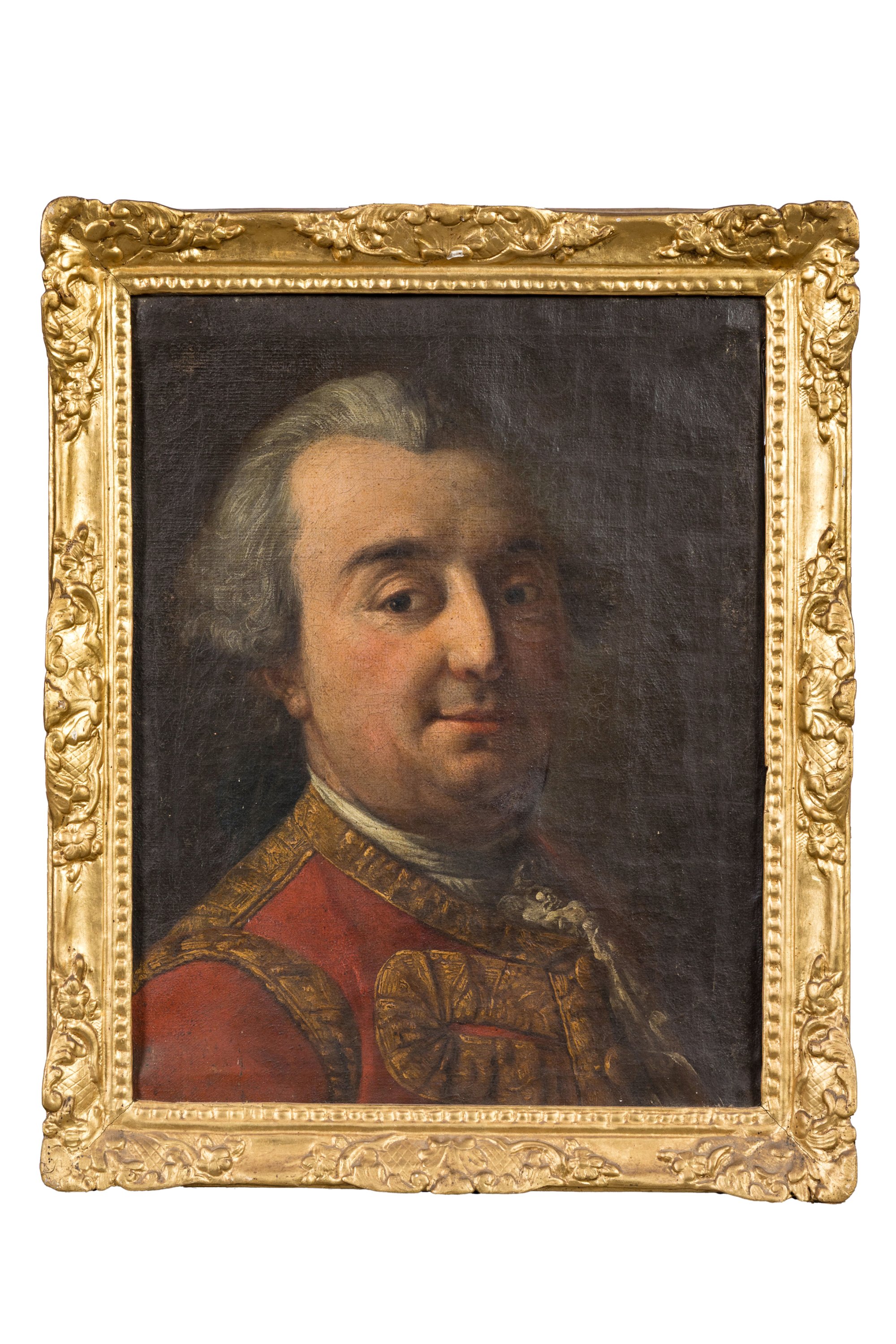 A ca. 1770 portrait of a man in a red jacket. Oil on canvas. French School.