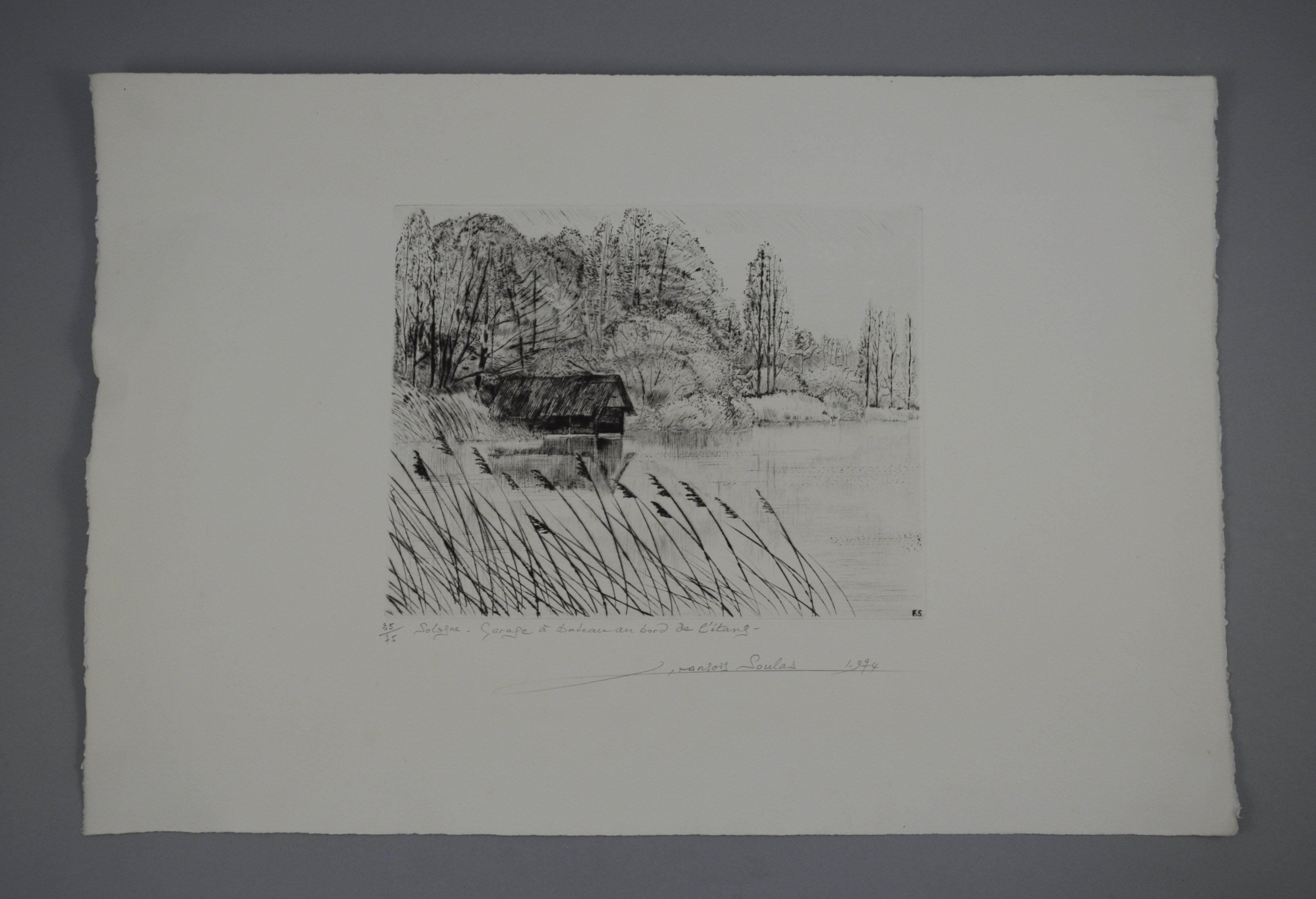 "Sologne. Garage à bateau au bord de l'étang", 1974