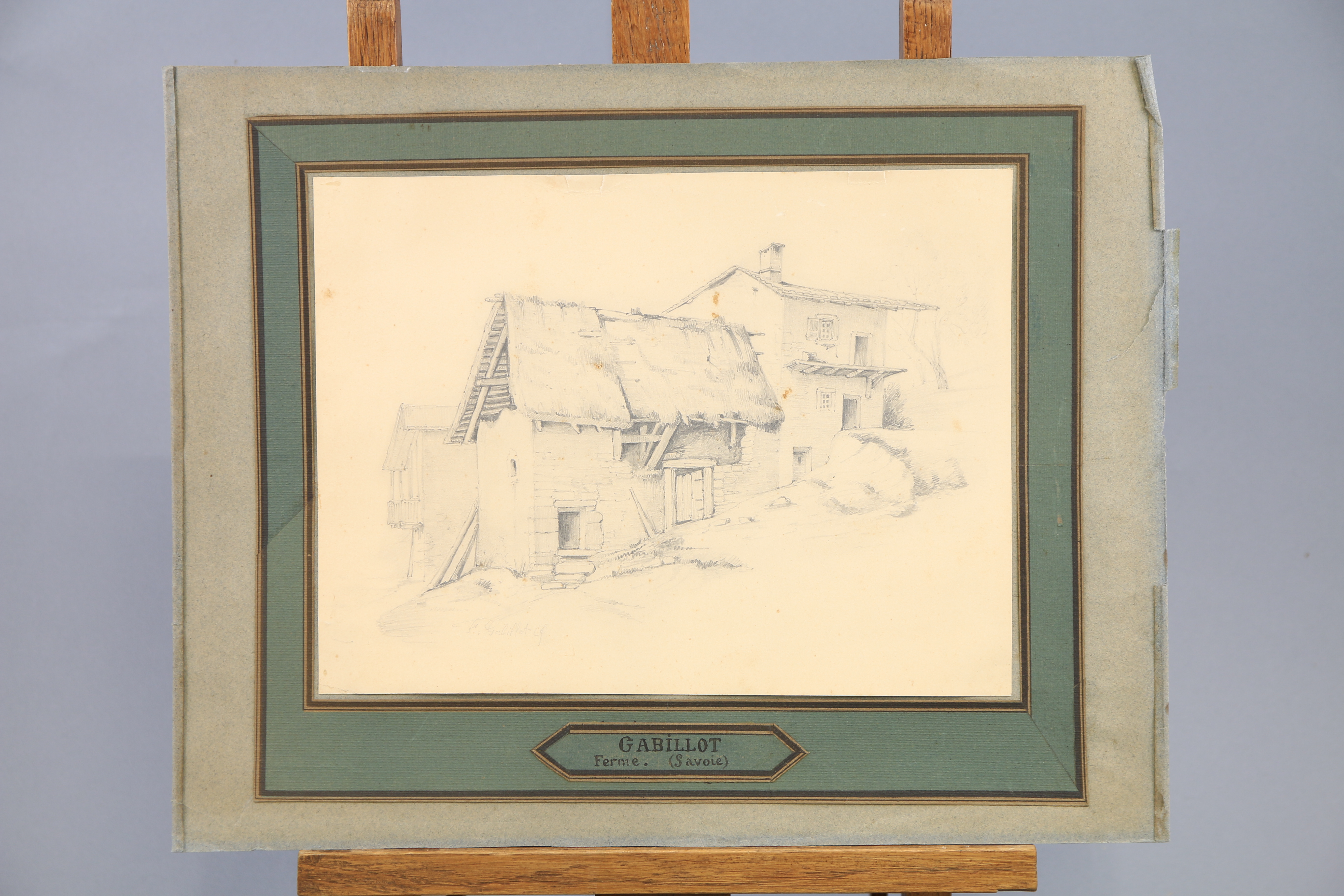 - Ferme en Savoie, crayon par Gabillot (Haut. 23 Larg. 30,5 cm).