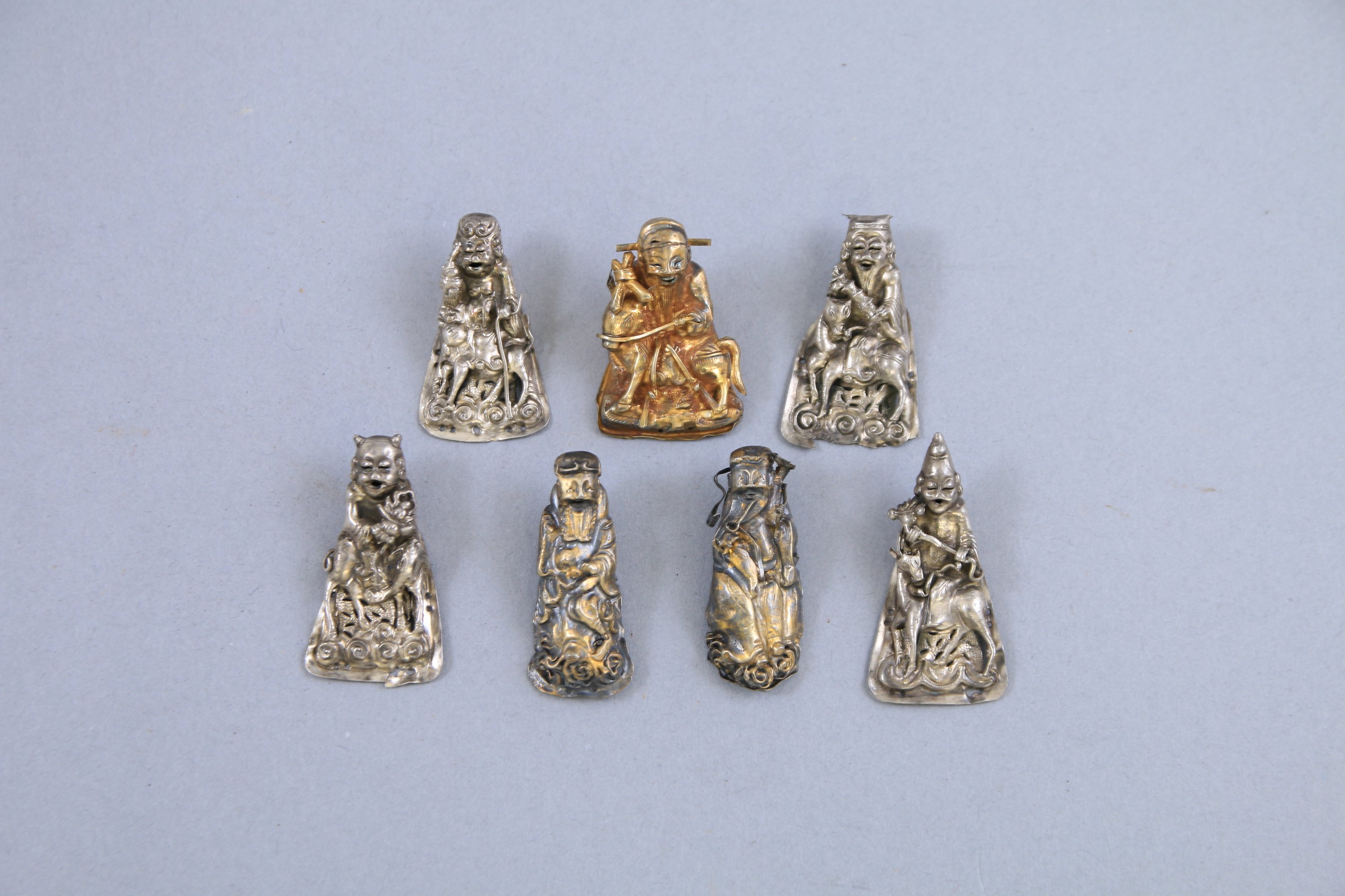 Joint: Chine, 12 amulettes. Argent et une en vermeil. Cinq soclées.