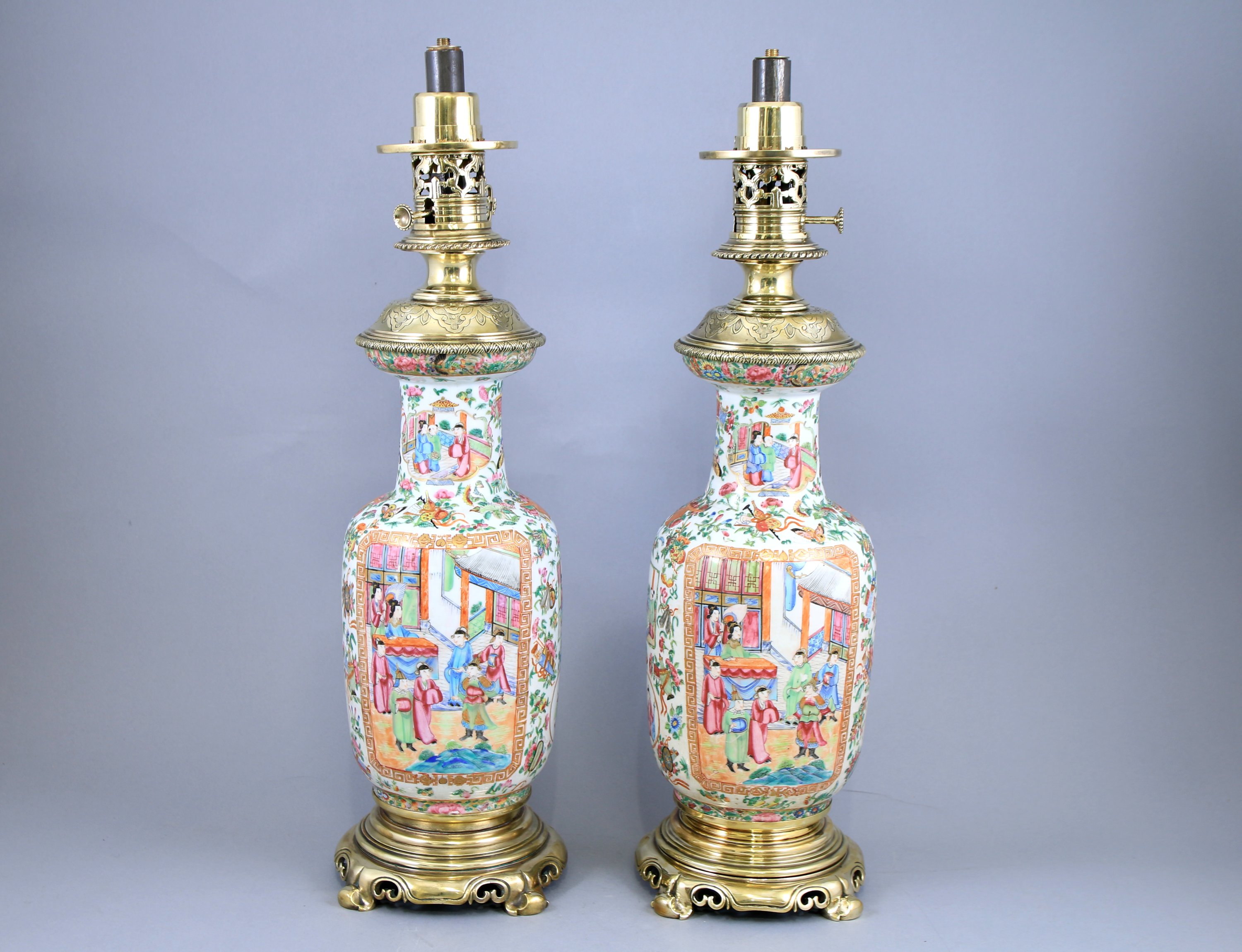 Deux cartouches à décor de scène de palais dans un entourage de végétaux et instruments de lettrés.
