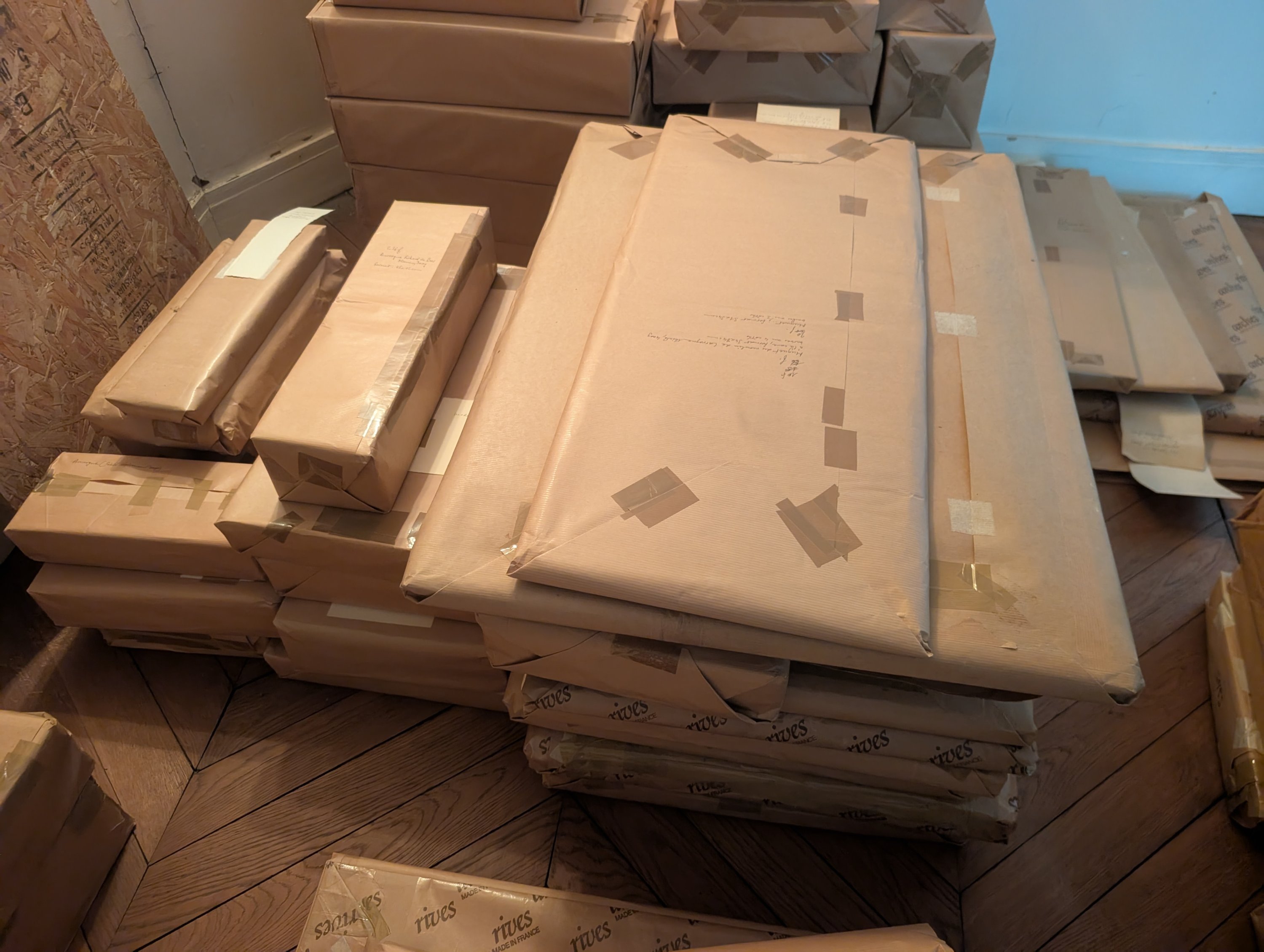 Plus de 7.700 feuilles de grande qualité (en partie artisanale), grammages, couleurs et formats divers, à l’appellation Auvergne et divers, dont: