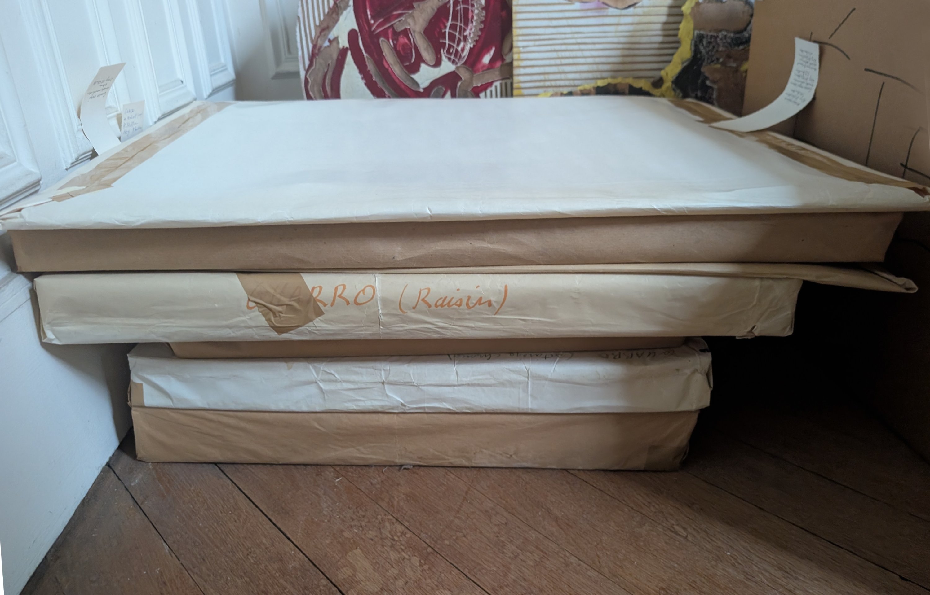 - Env. 480 feuilles Guarro satiné chromo, filigrané à la main, 220g., ft demi-Raisin.