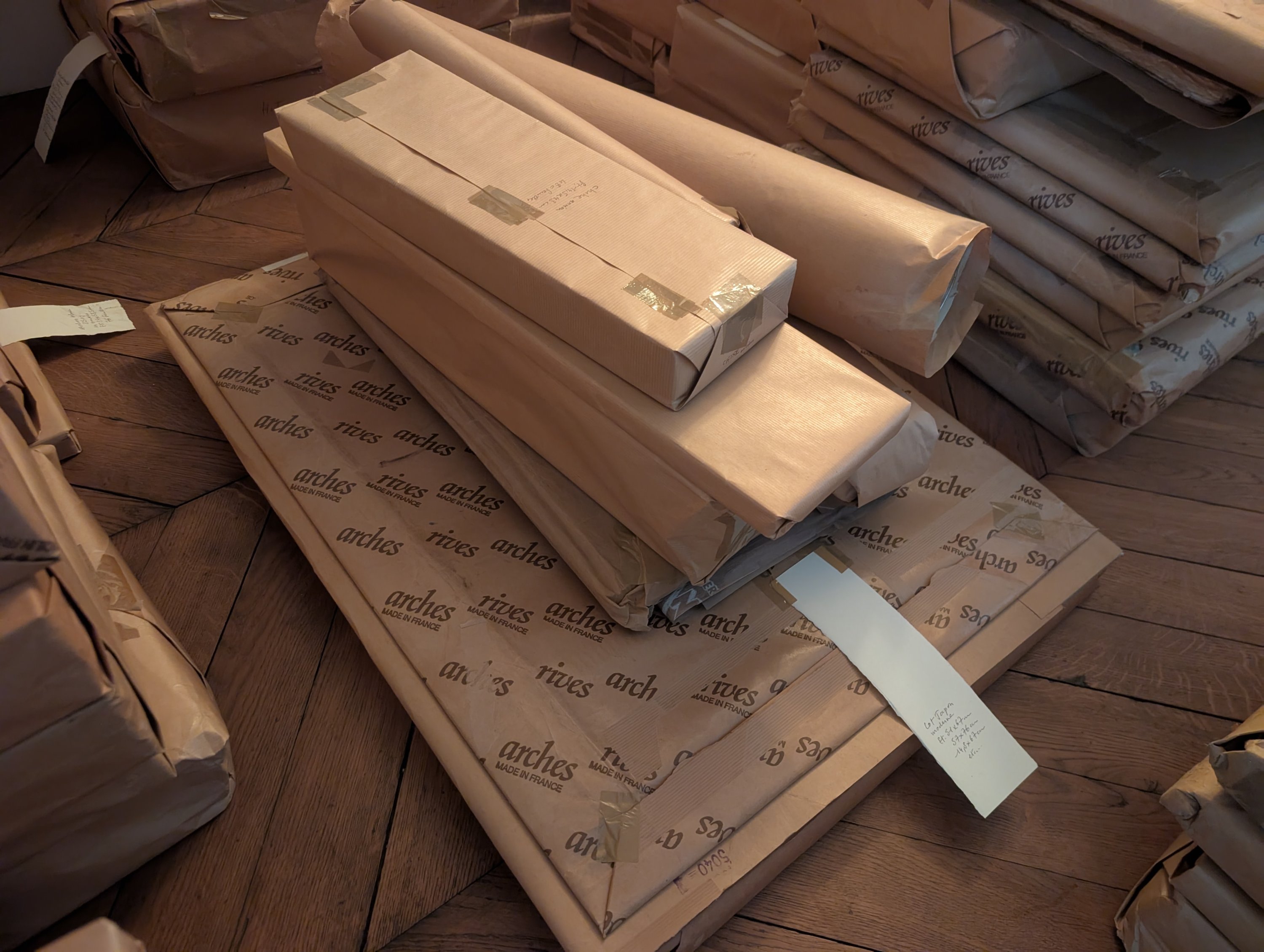 NOTA: Les mentions relatives à l'origine, aux filigranes, aux dimensions et au nombre de feuilles sont fournies à titre purement indicatif et non exhaustif. L'exposition préalable ayant permis aux acquéreurs d’examiner l’état et la composition des lots, aucune réclamation ne sera admise une fois l'adjudication prononcée.