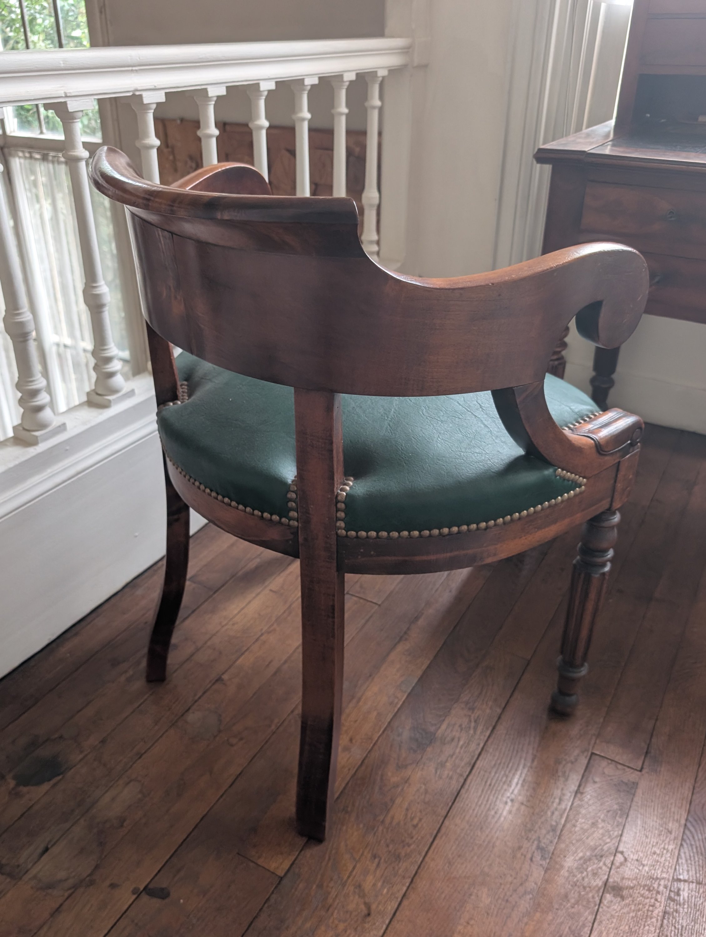 Le fauteuil en placage de noyer au dossier gondole au même modèle.