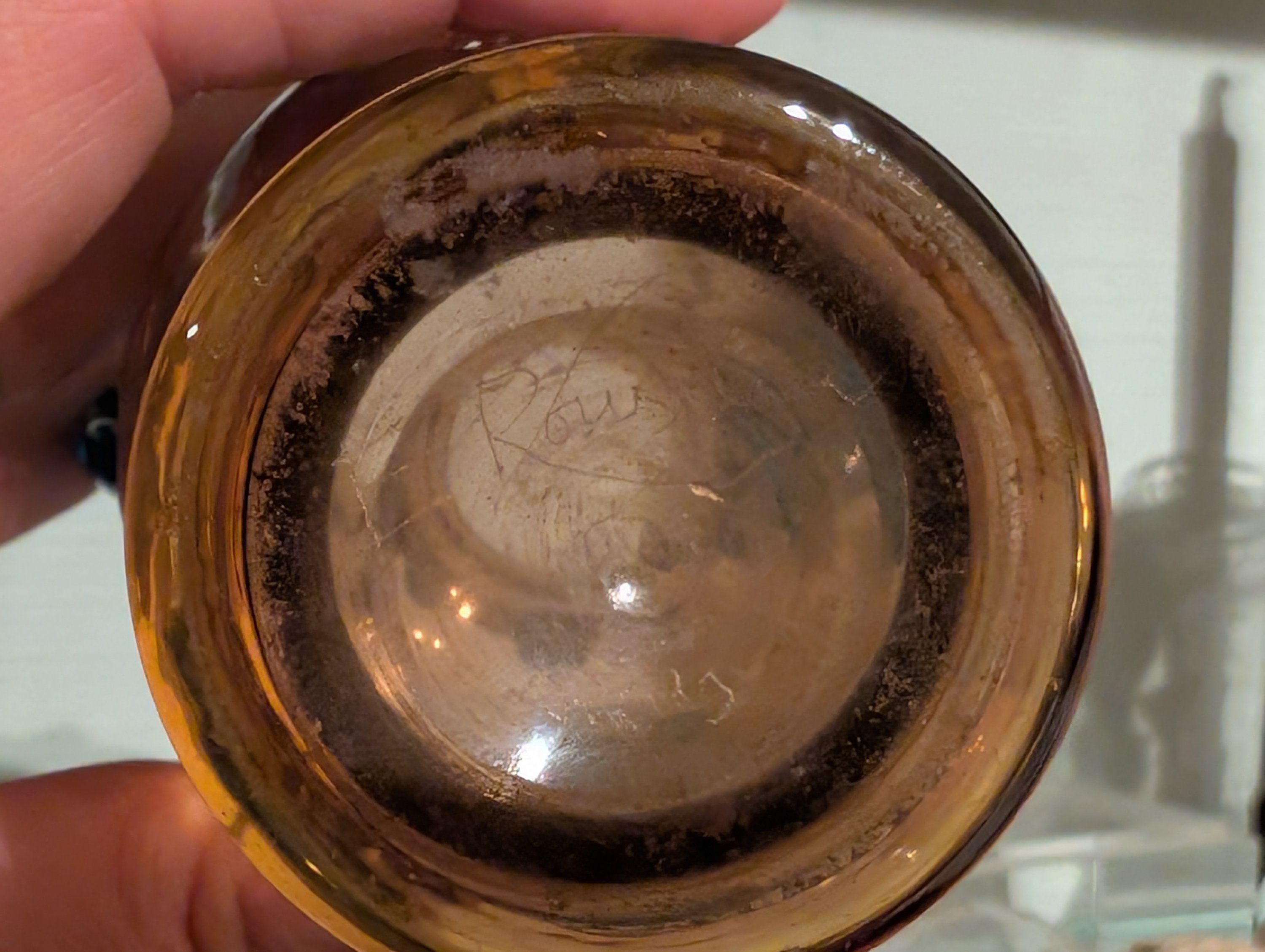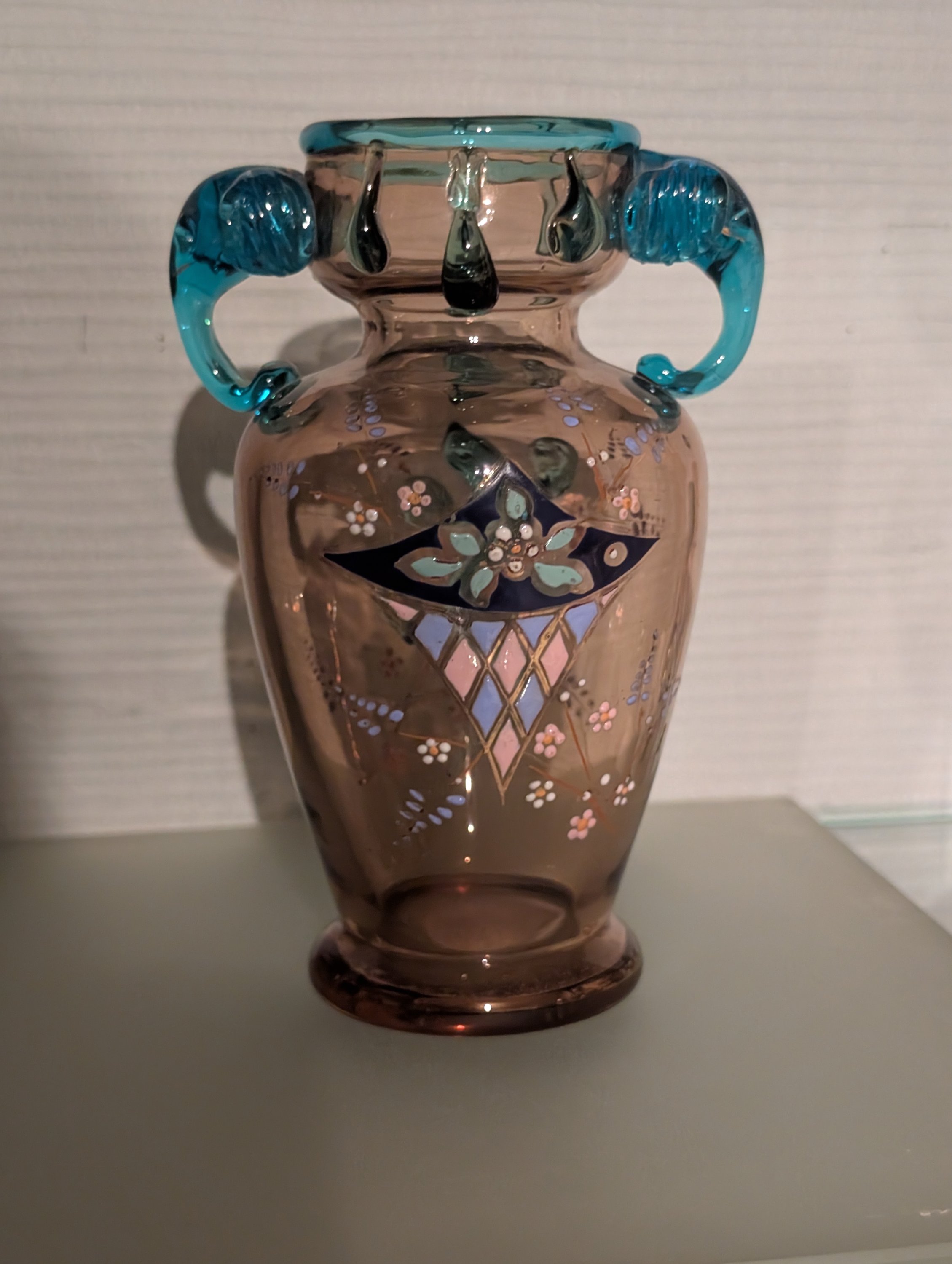 Verre filé avec des plaque en verre bleu et un décor émaillé.