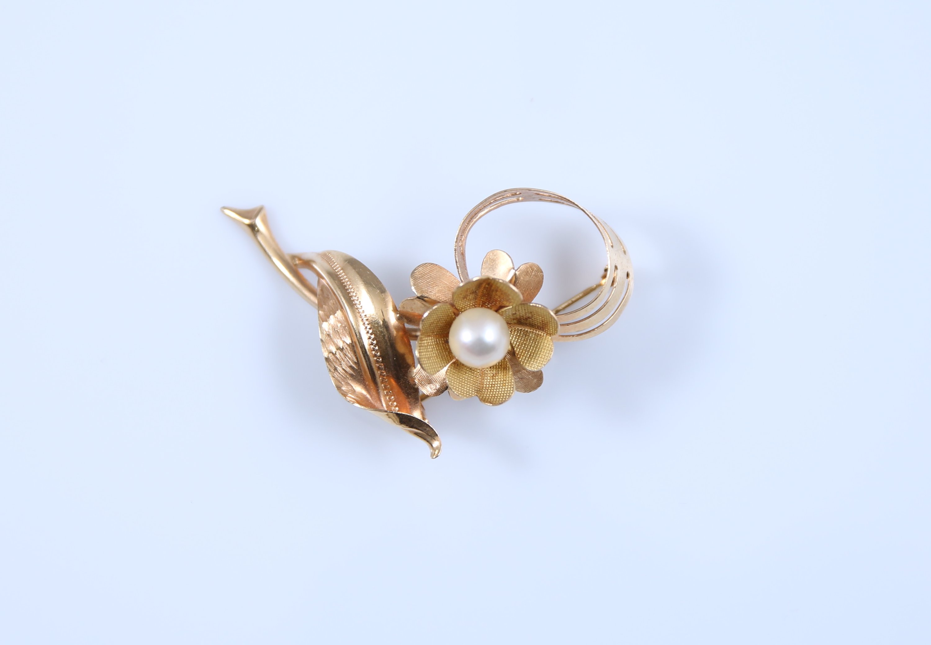 Or jaune 750 millièmes, sertie d'une perle.