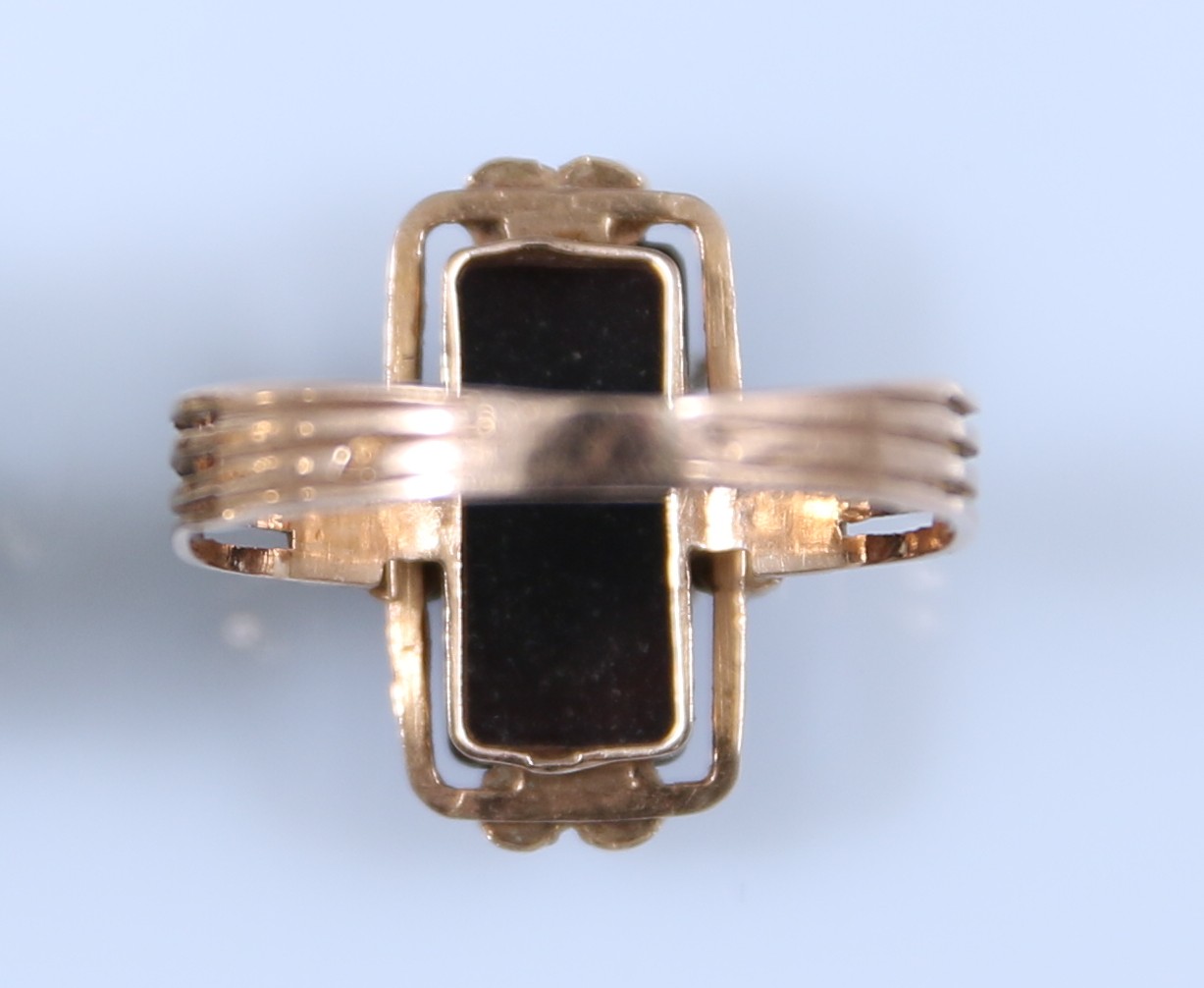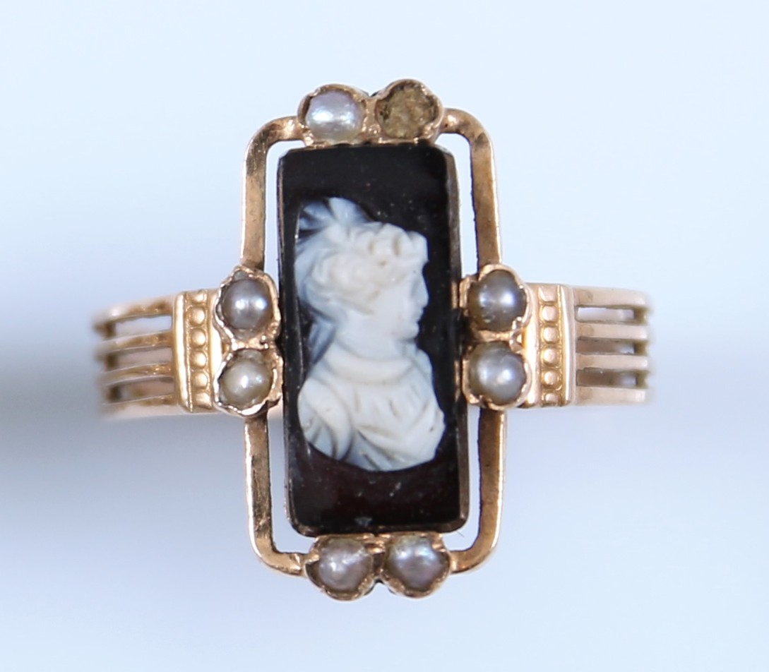 Or jaune 750 millièmes, au chaton au profil féminin à l'imitation d'un camée.
