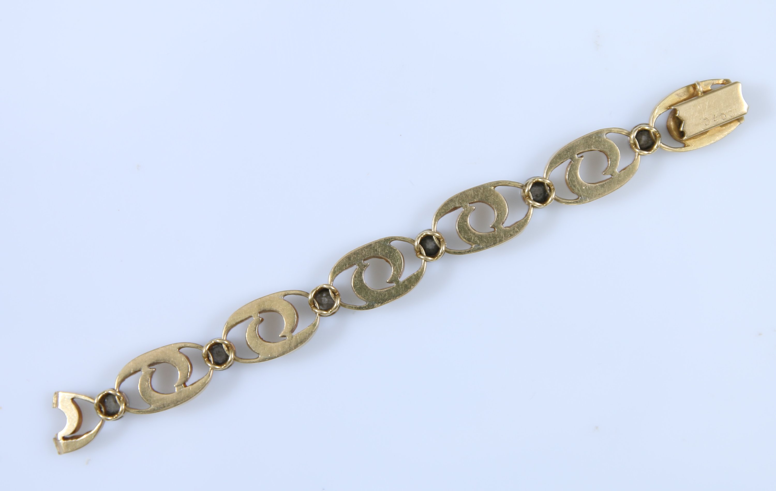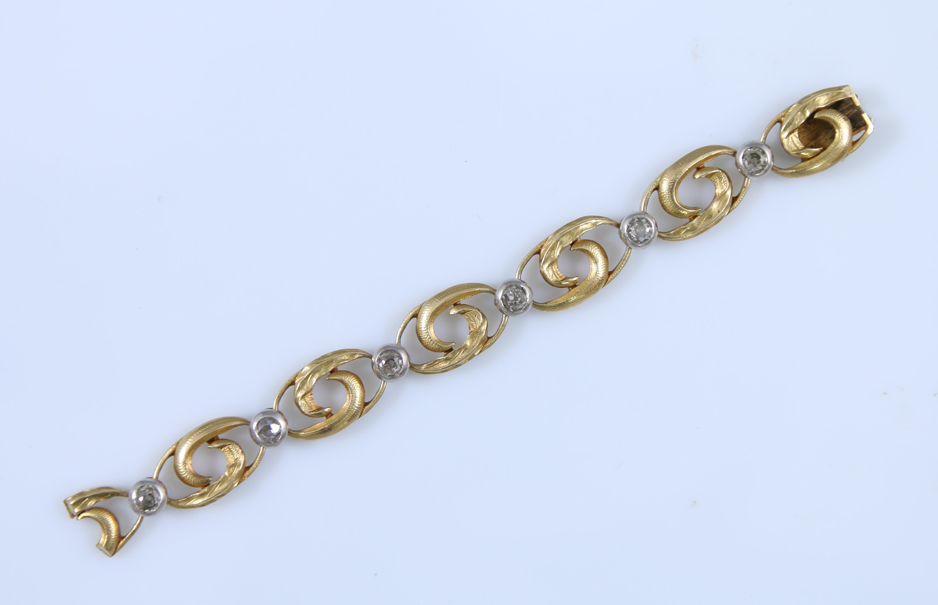 Or jaune 750 millièmes à la maille en alternance de six petits diamants.