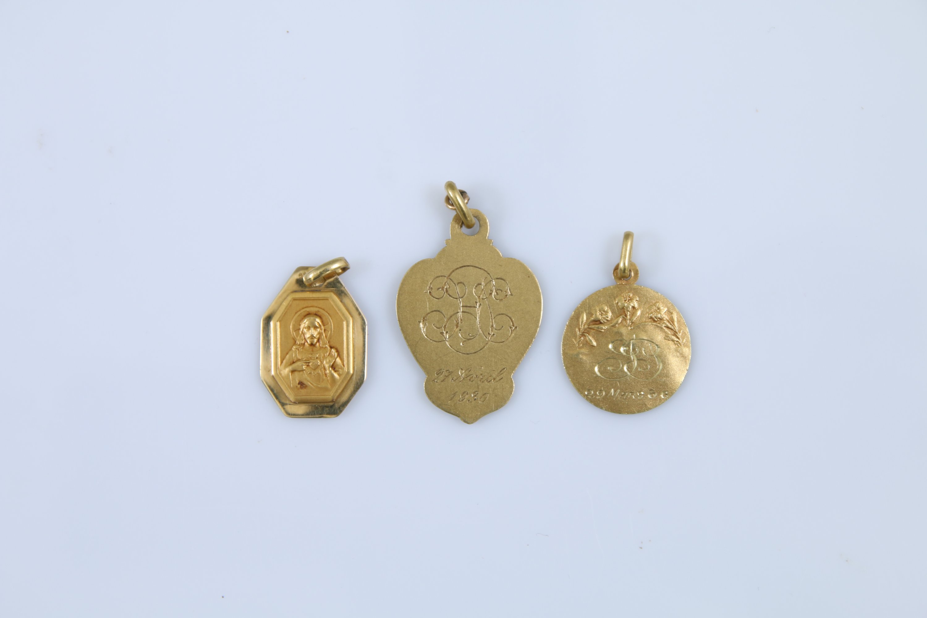 Or jaune 750 millièmes, figurant le Christ et le Sacré Coeur.