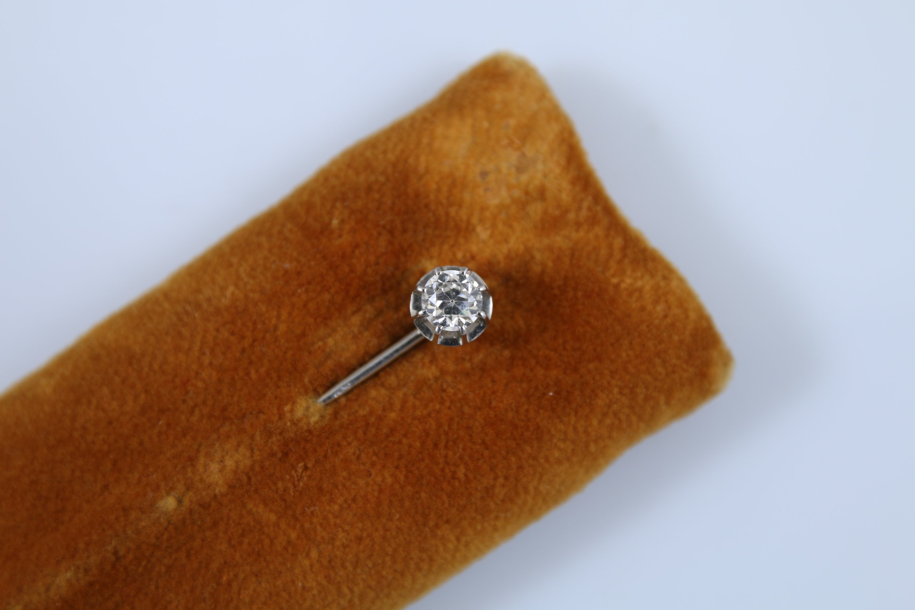 Or gris 750 millièmes, sertie d'un diamant d'env. 0,36/0,4 ct.