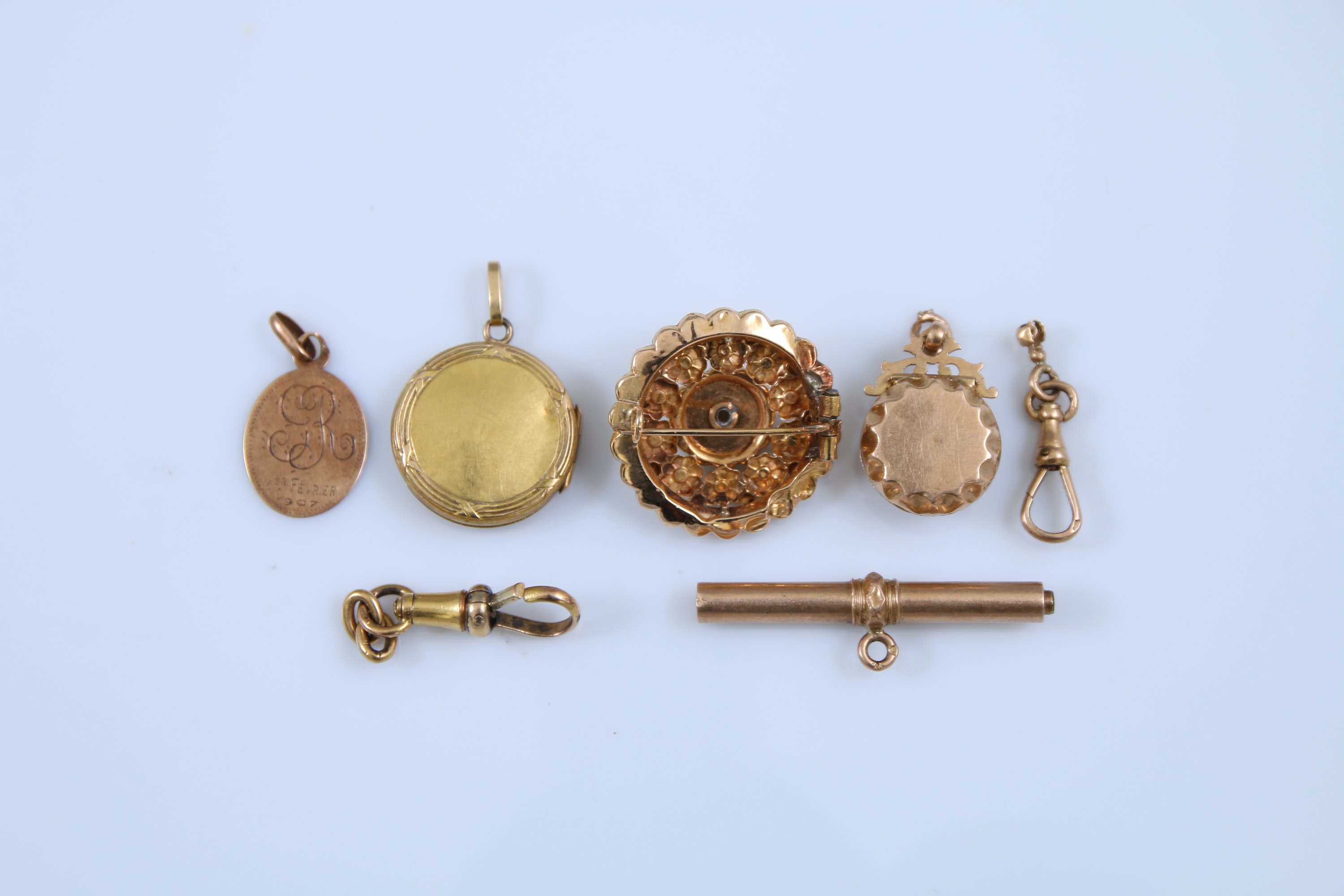 Ils comprennent une broche, un pendentif, une médaille religieuse, un médaillon porte-photo à l'intérieur en verre (accidenté), un stylet et deux attaches de montre.