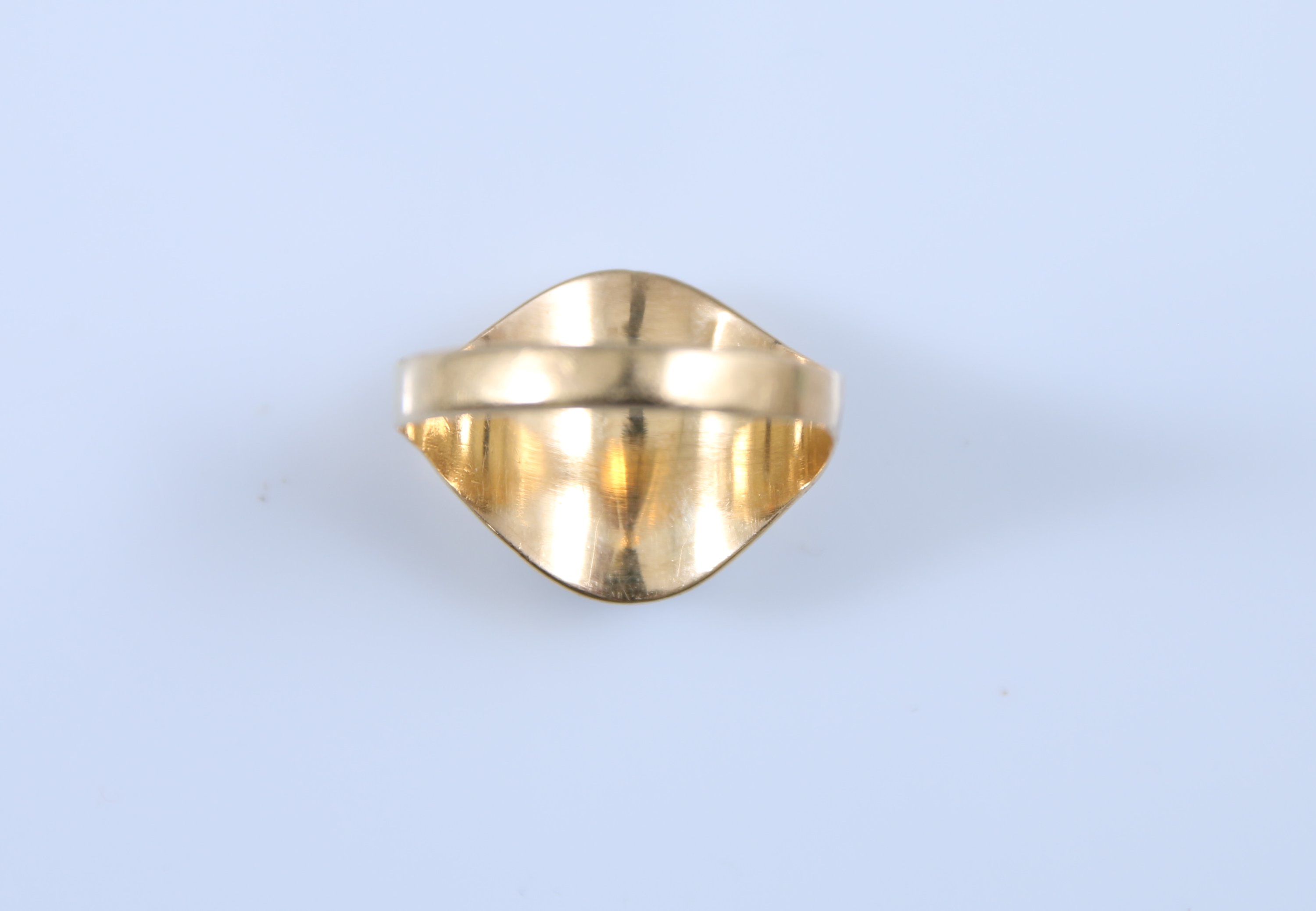 Or jaune 750 millièmes, au chaton monogrammé "MV" sur fond noir.