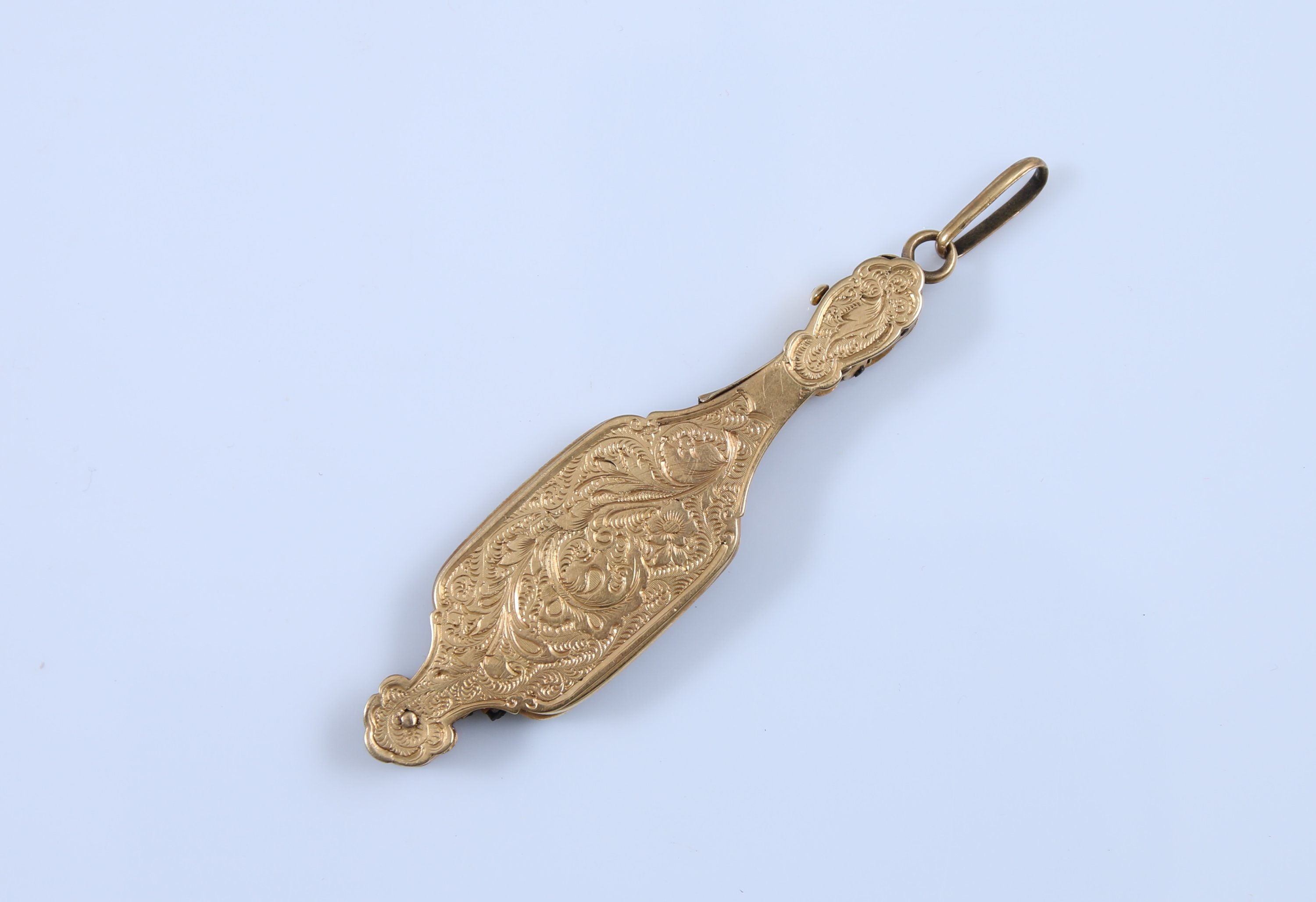 A riche décor gravé de motifs végétaux.