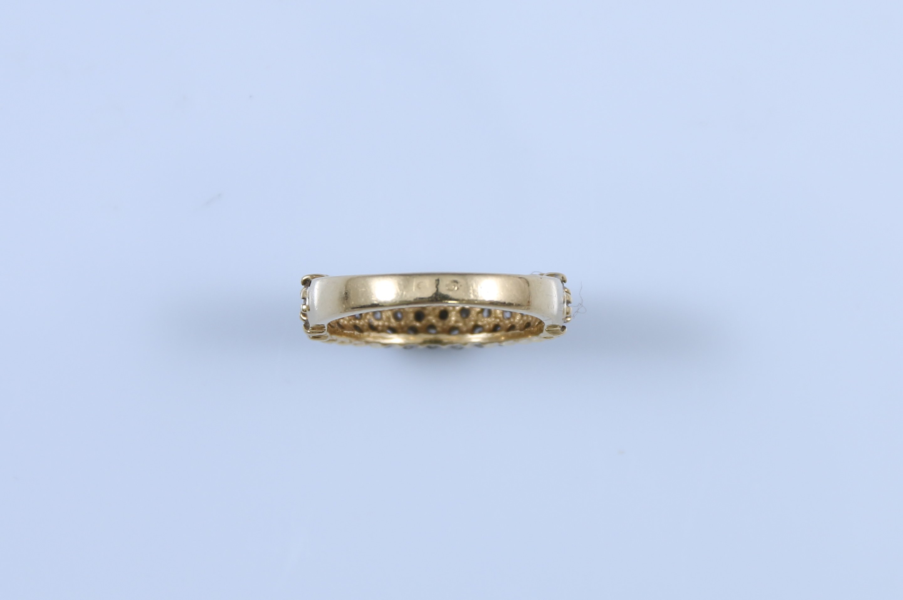 Or jaune 750 millièmes ornée au centre de trois lignes de diamants ronds de taille brillant.