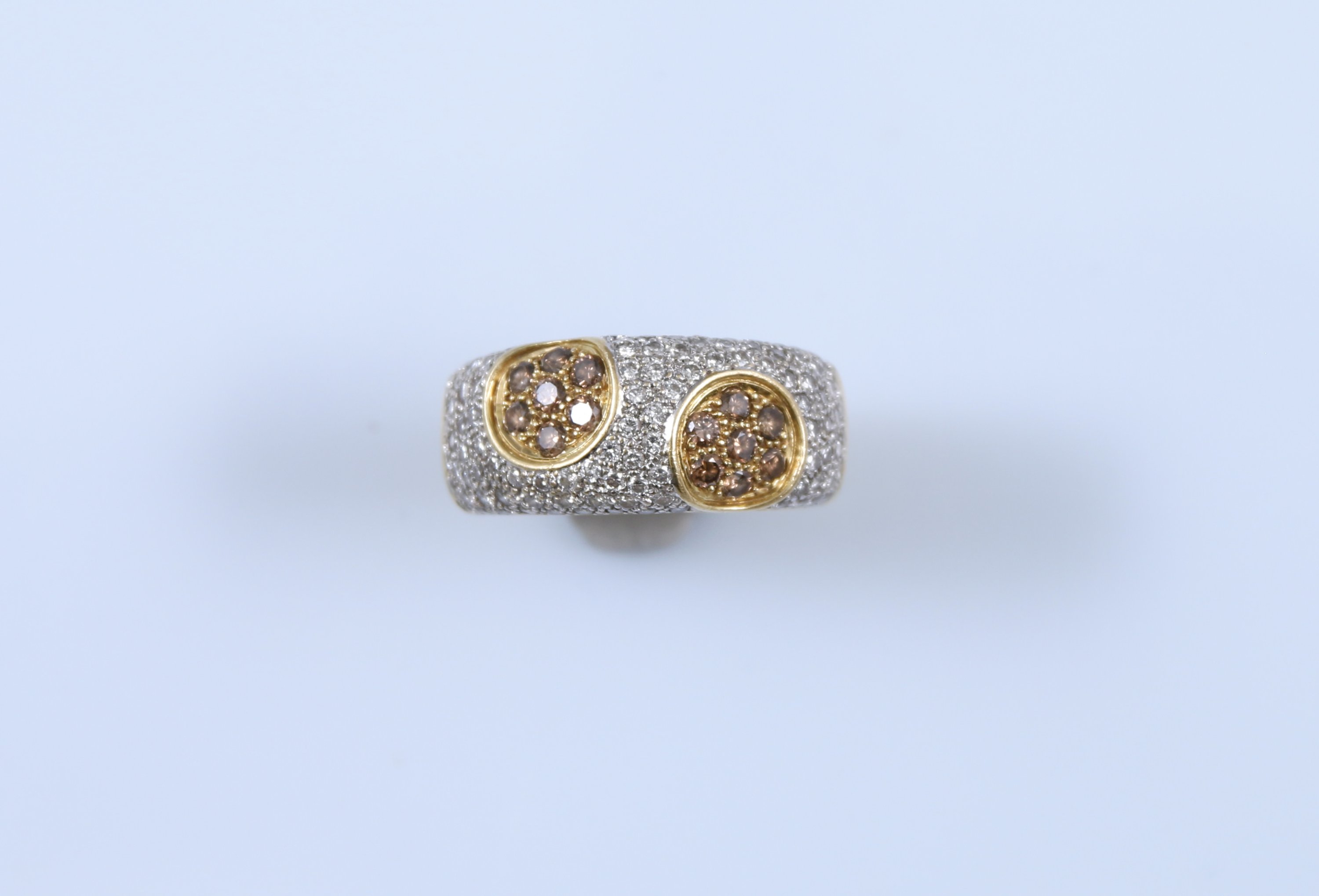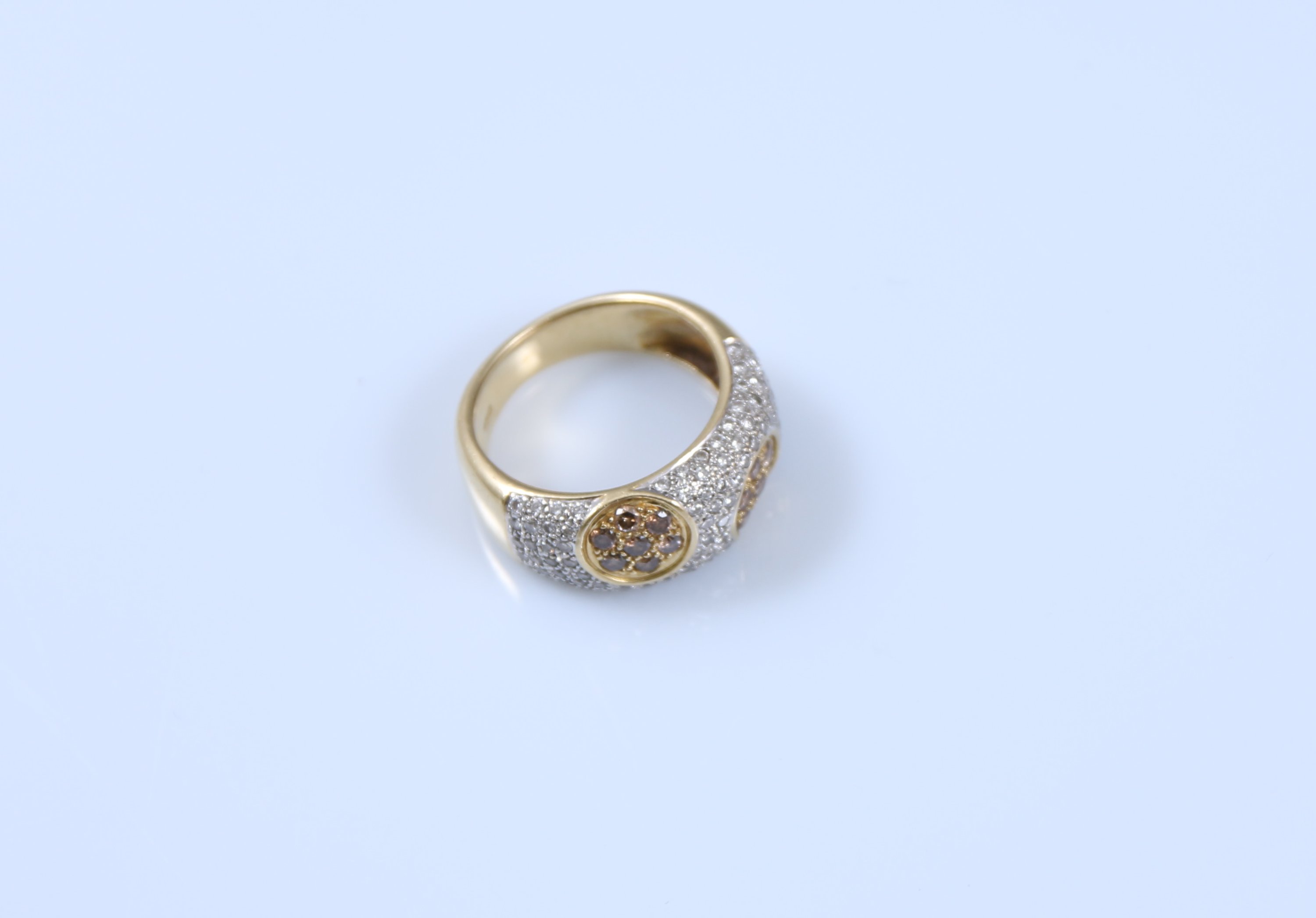 Or jaune 750 millièmes sertie d'un pavage de diamants et citrines à décor de deux cercles.