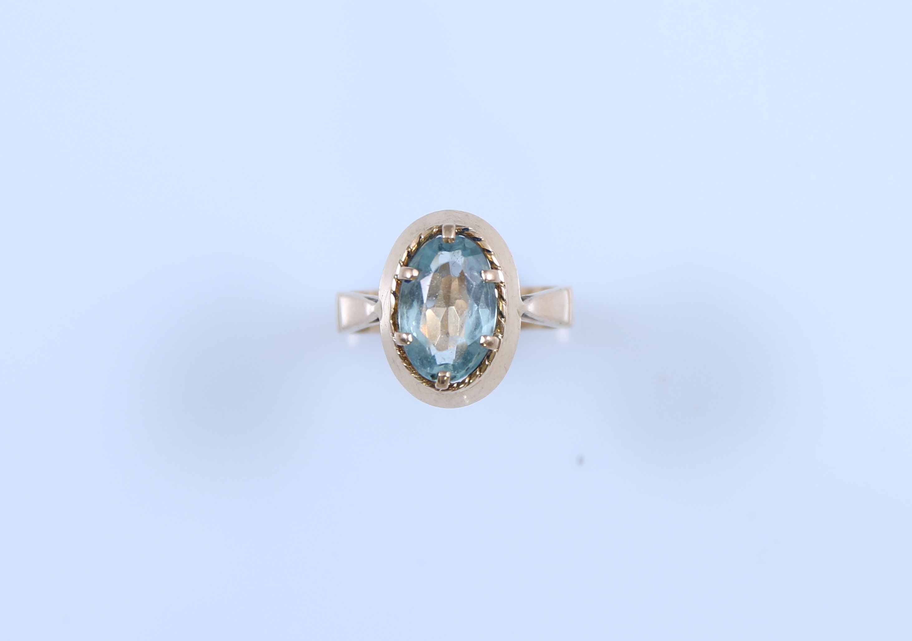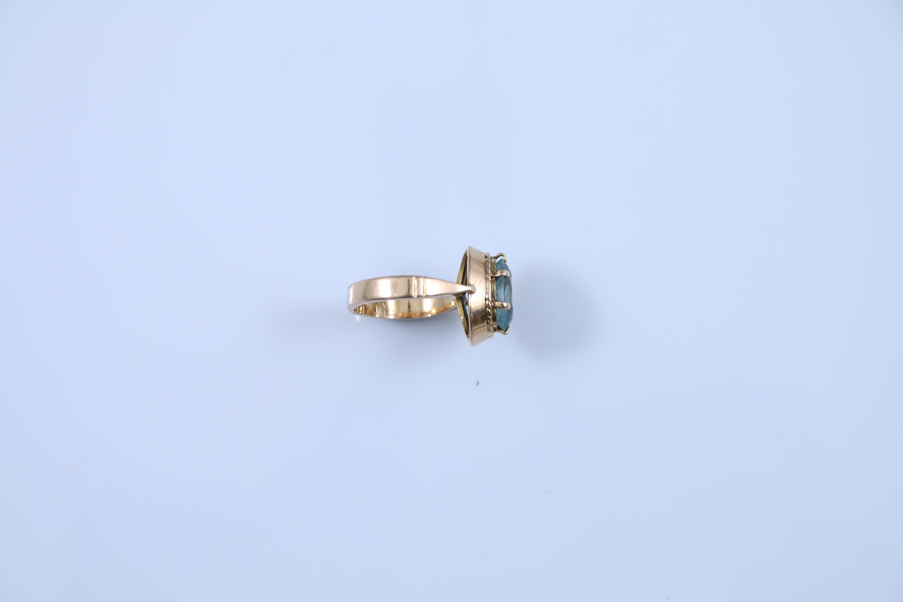 Or jaune 750 millièmes sertie d'une aigue-marine de forme ovale.