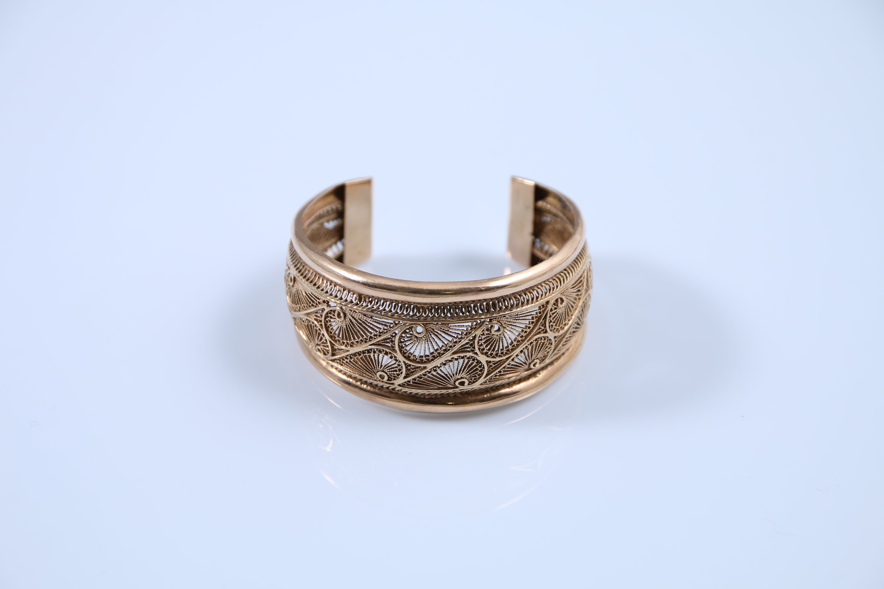 Or jaune 750 millièmes finement réticulé de motifs d'enroulements.