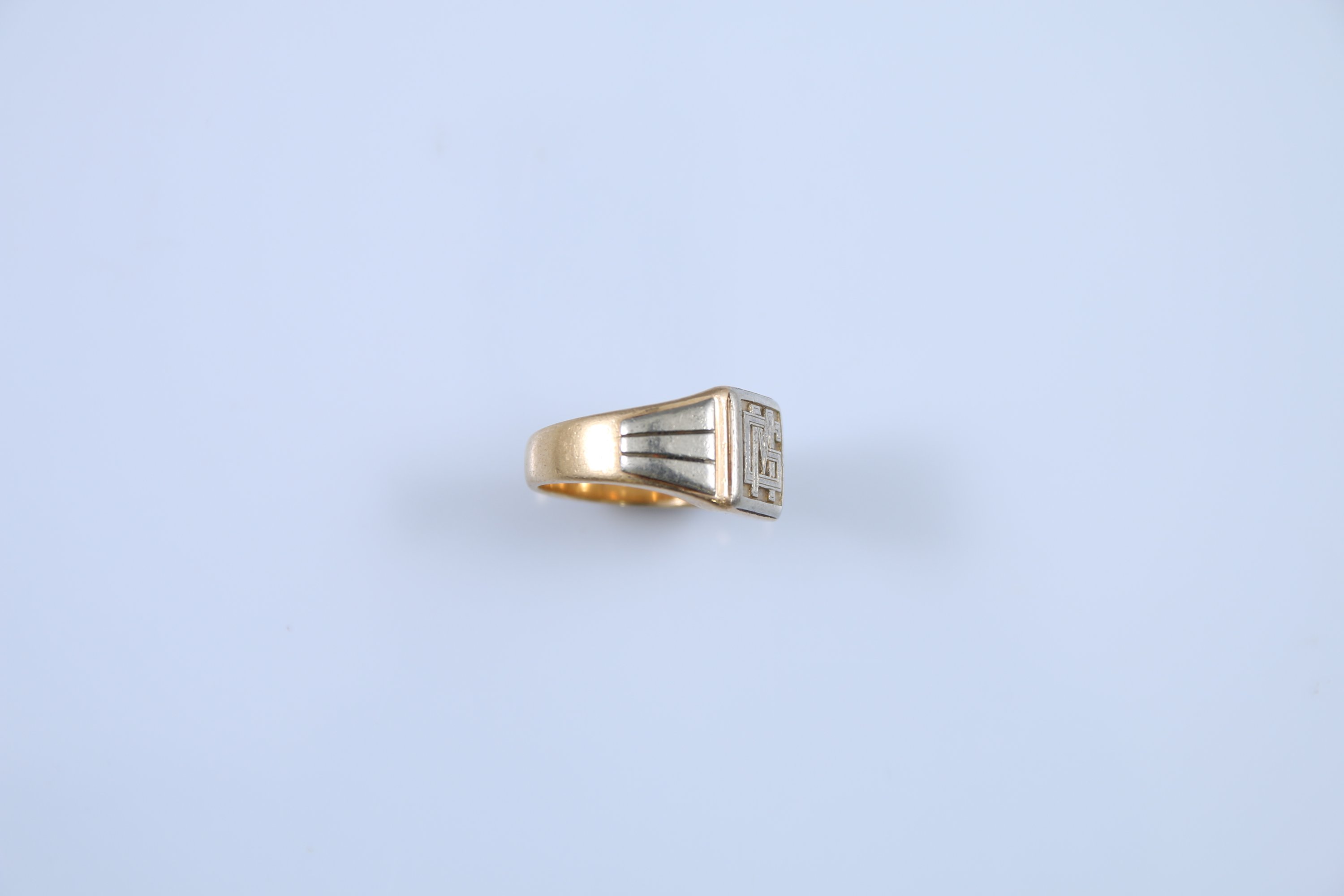 Or jaune et gris 750 millièmes au chaton monogrammé "MG".