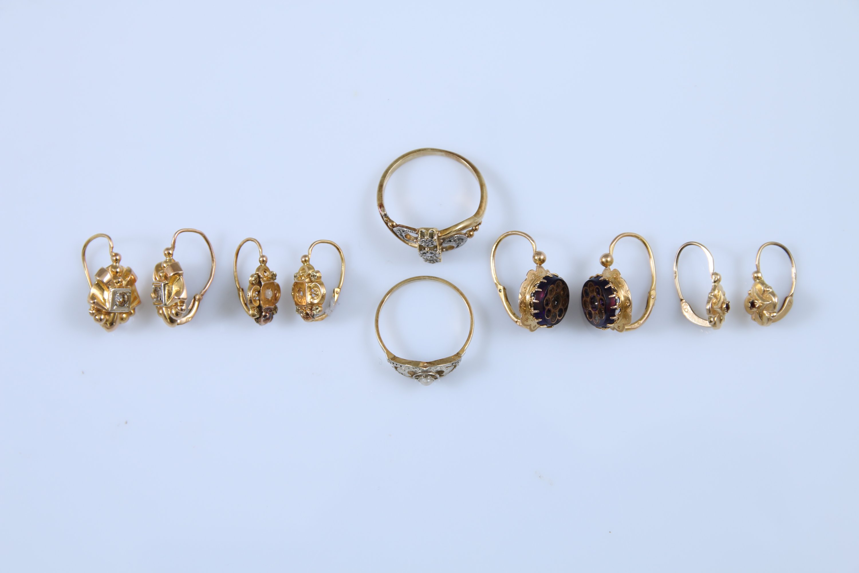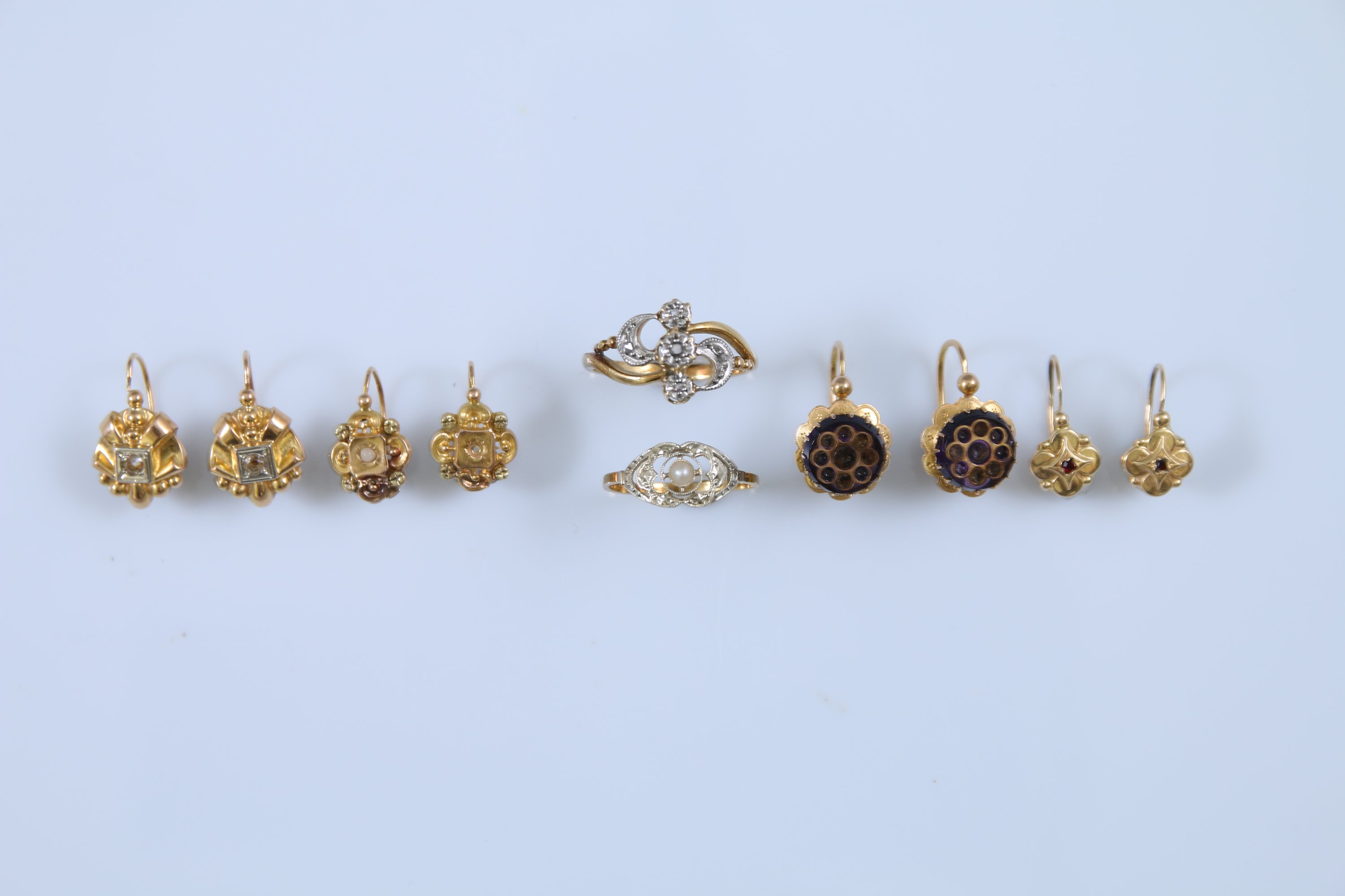 Ils réunissent quatre paires de boucles d'oreille serties de pierres, perles ou émail (certaines accidentées) et deux bagues.