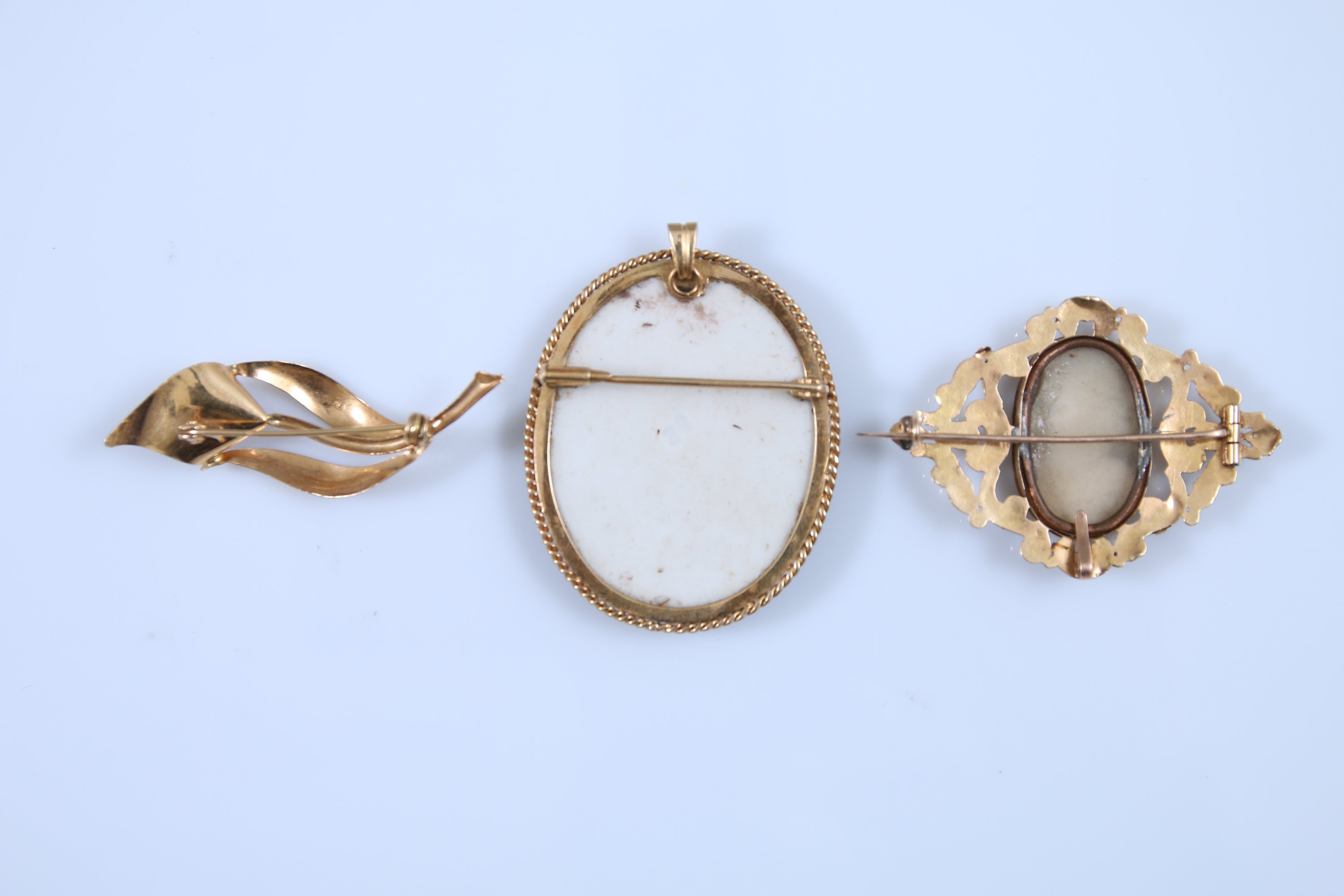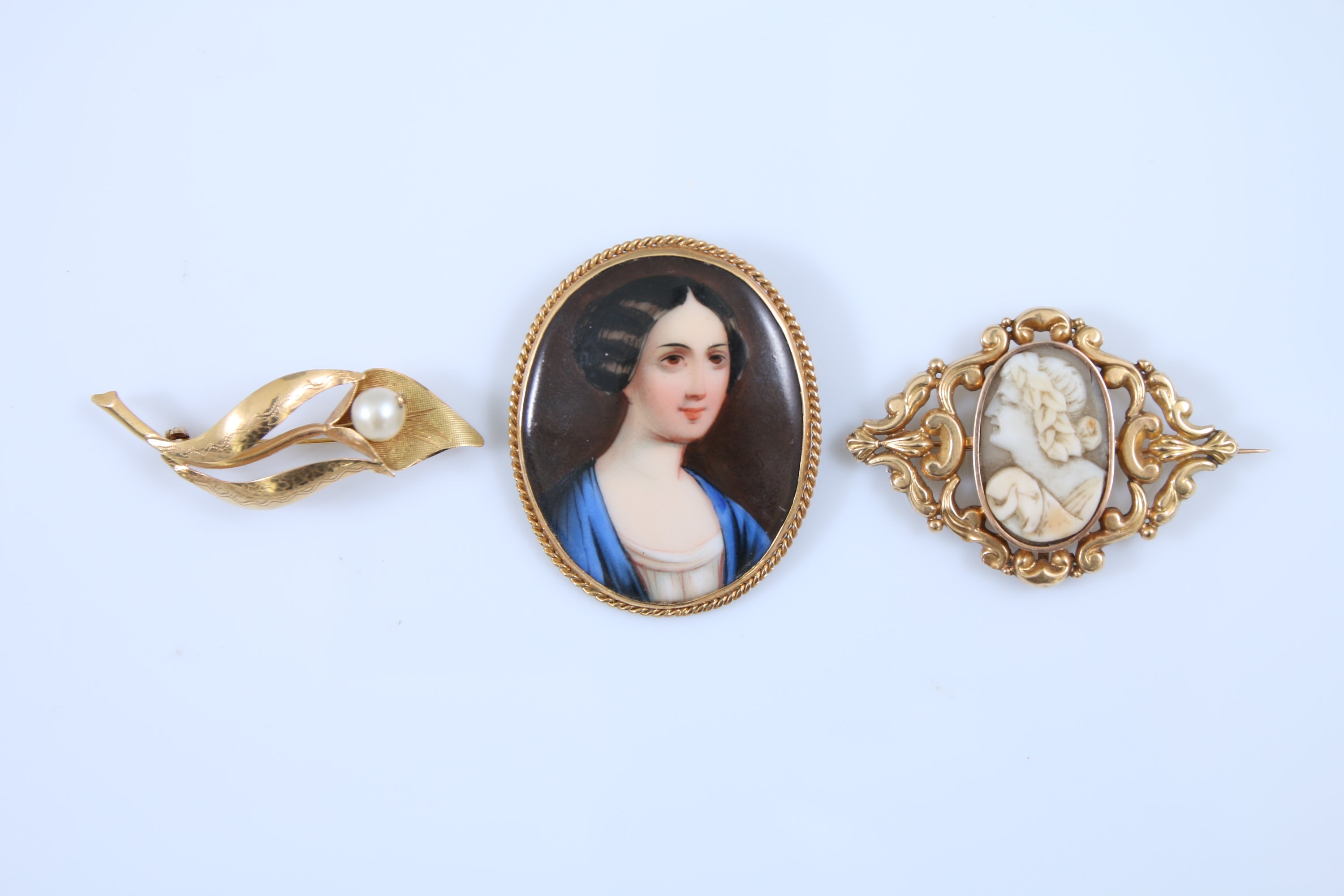 - La deuxième ornée d'un camée sur pierre figurant un profil de muse dans un entourage ajouré de style Louis XV. Haut. 36,7 Larg. 55,4 mm. (accident)