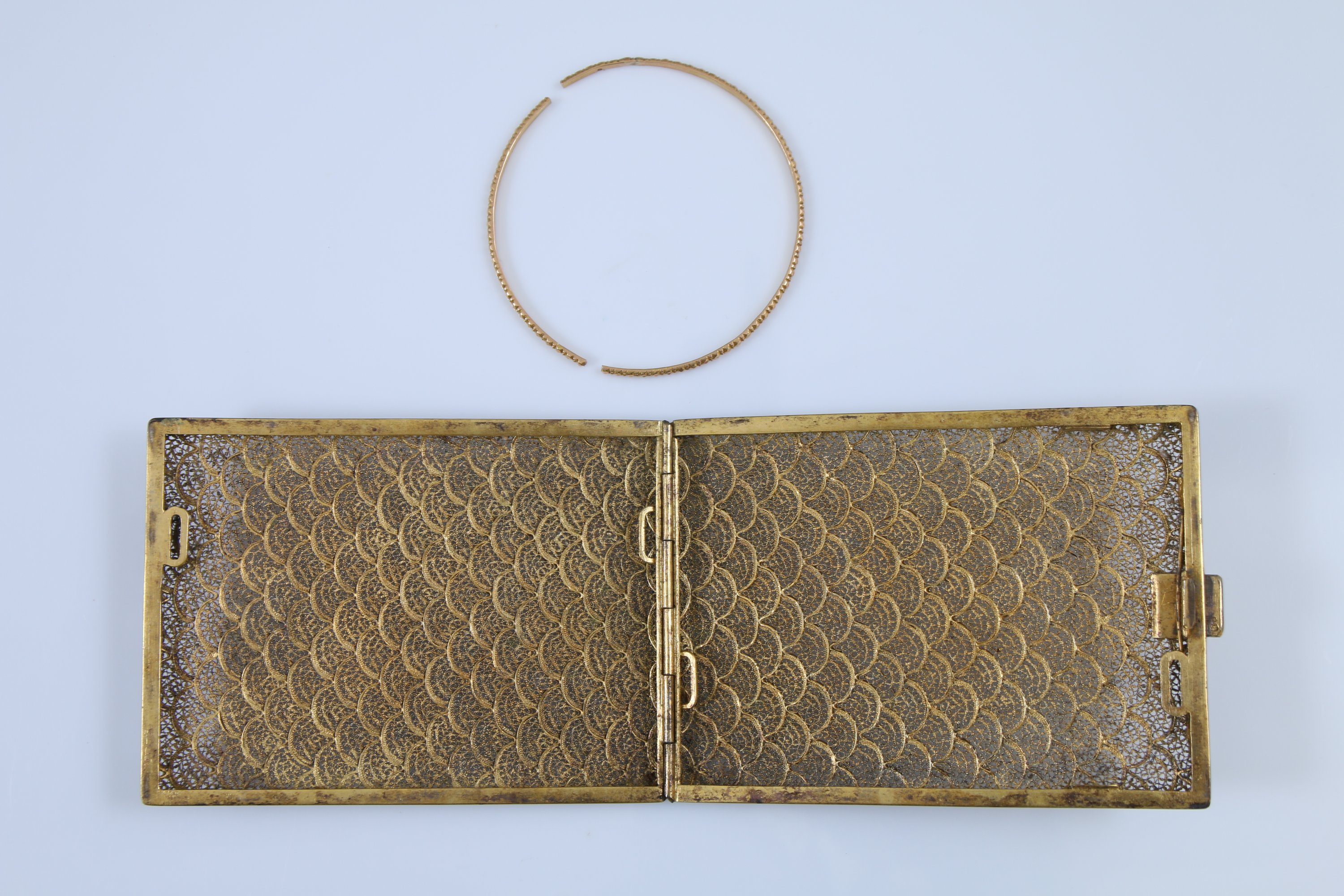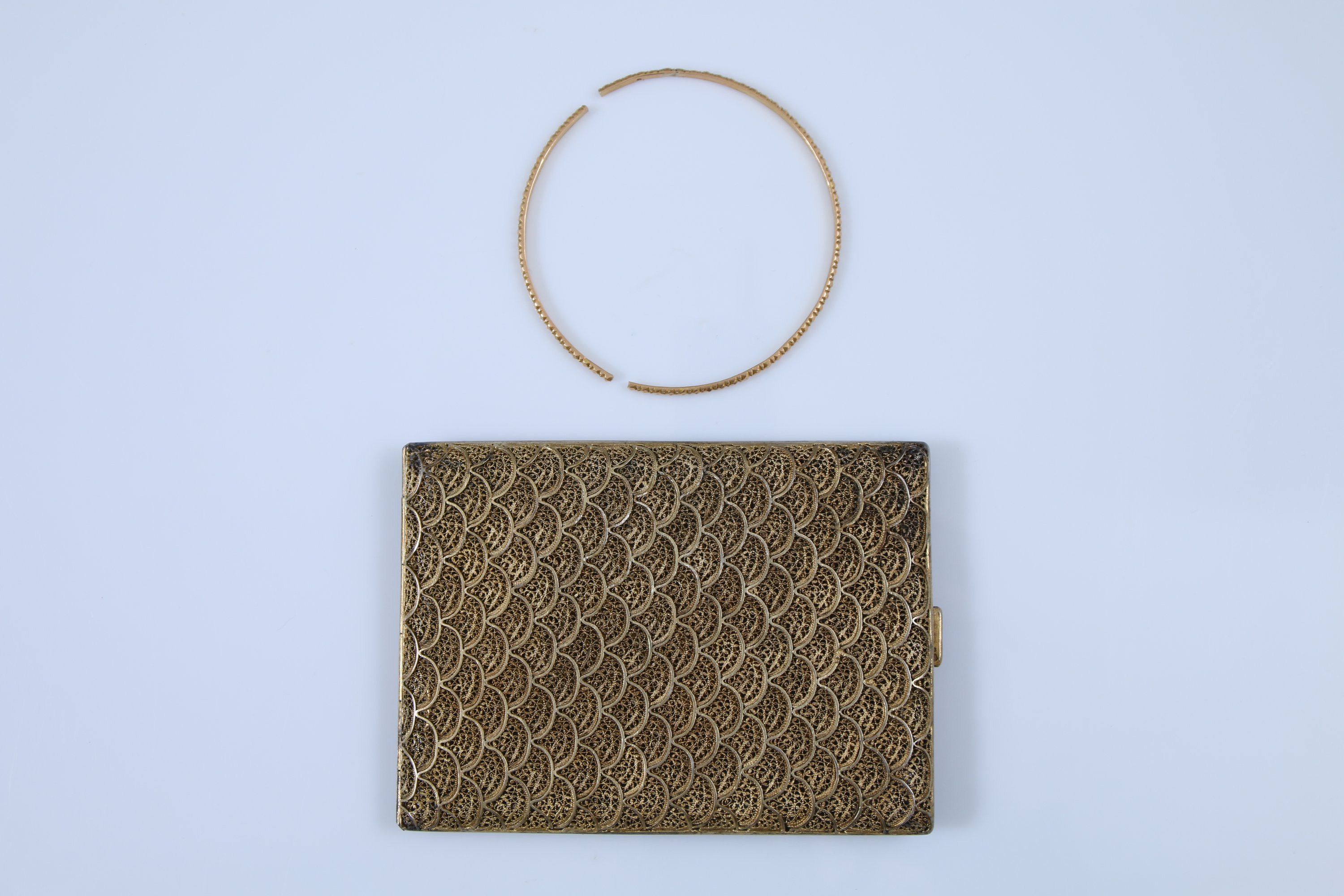 Joint: un étui à cigarette en vermeil à décor d'écailles filigranées, travail probablement malgache.