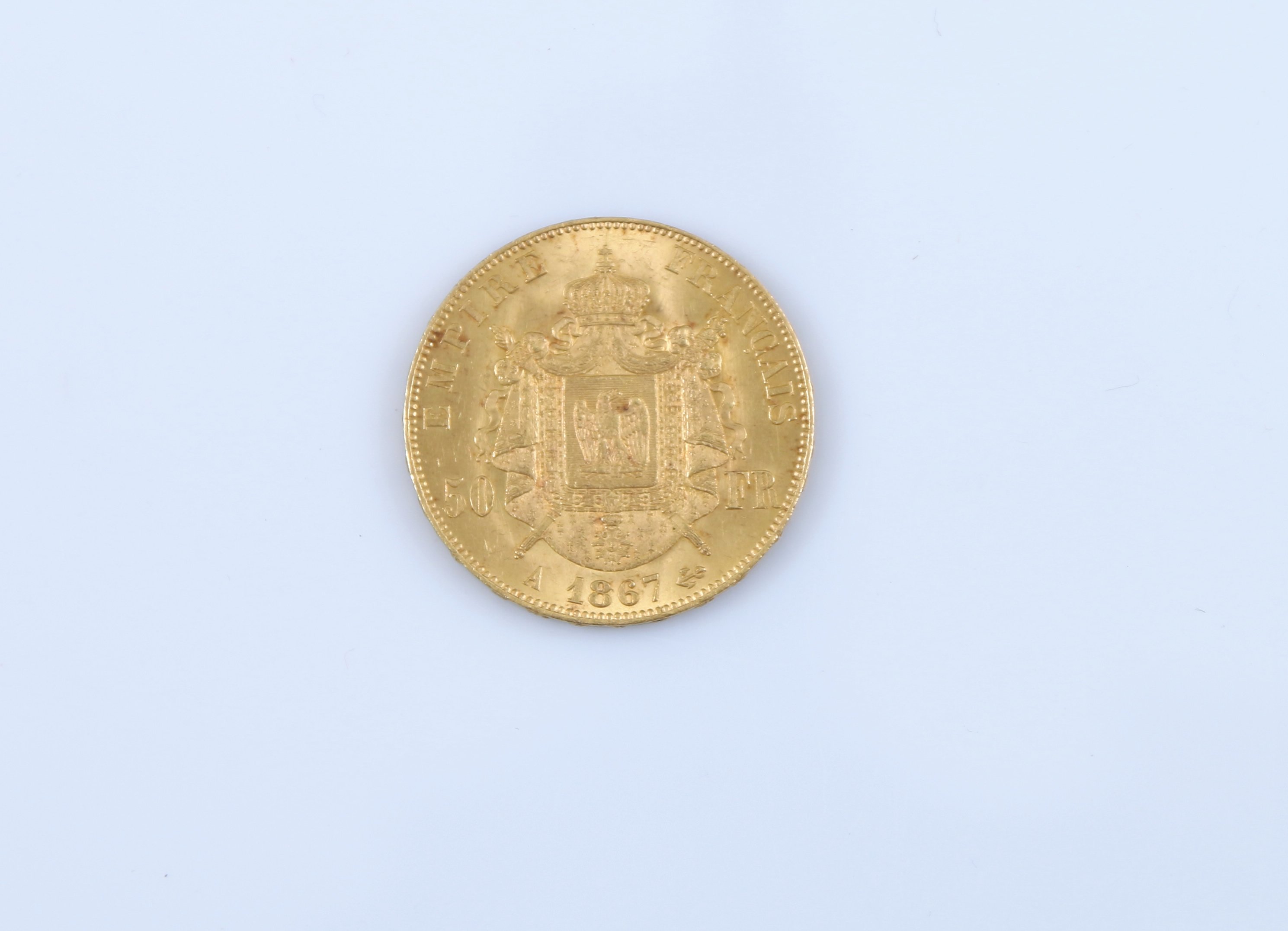 FRANCE. 1 PIECE 50 FRANCS OR, Napoléon III tête laurée, 1867, Paris.