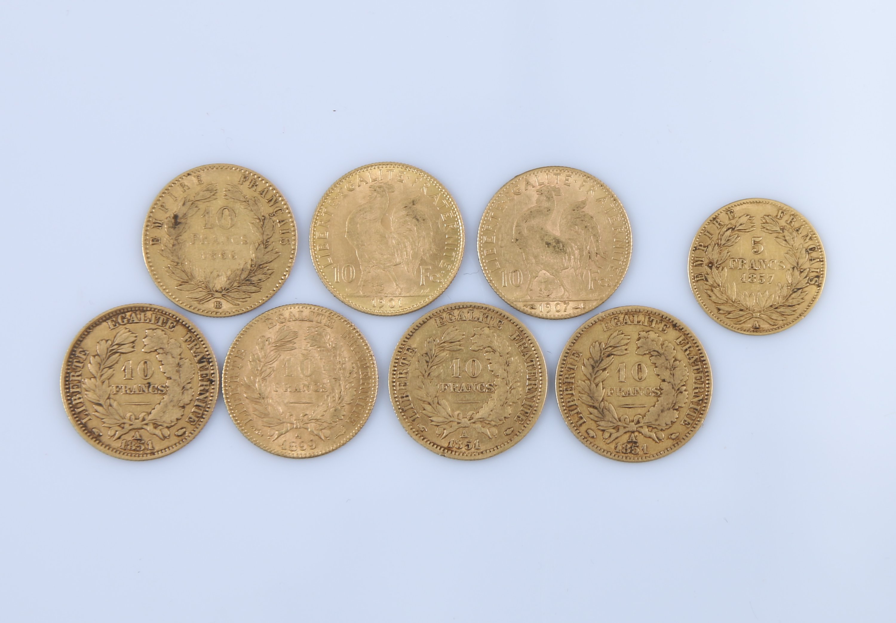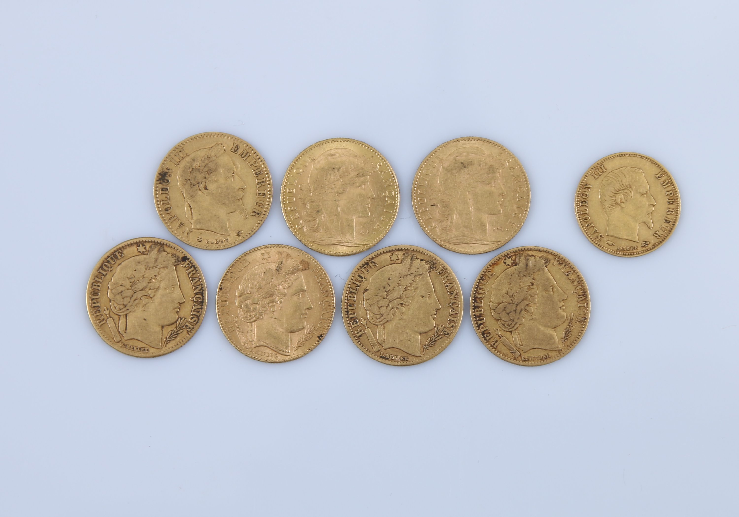 FRANCE. 7 x 10 FRANCS OR et 1 x 5 FRANCS OR: