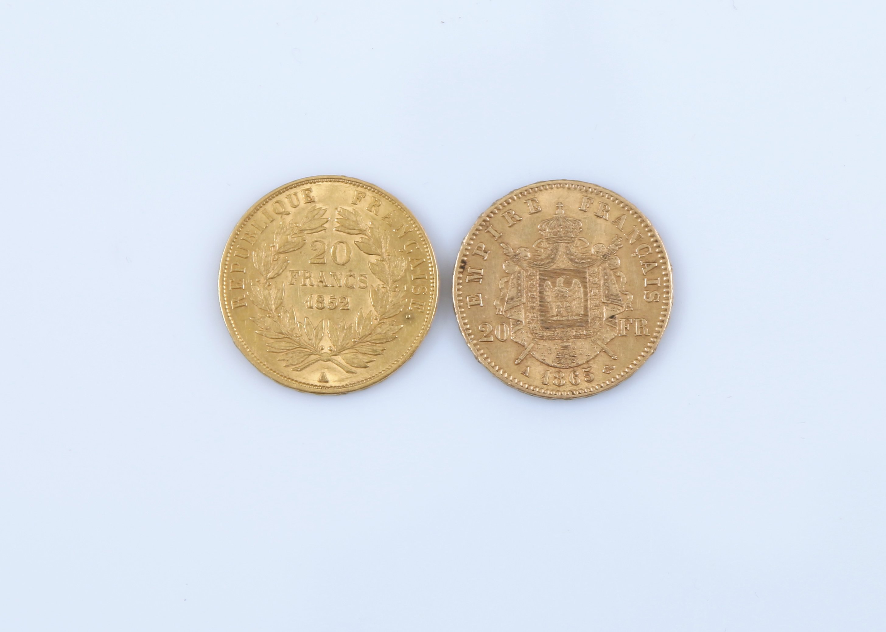 - 1 x Napoléon III tête nue, 1852, Paris.