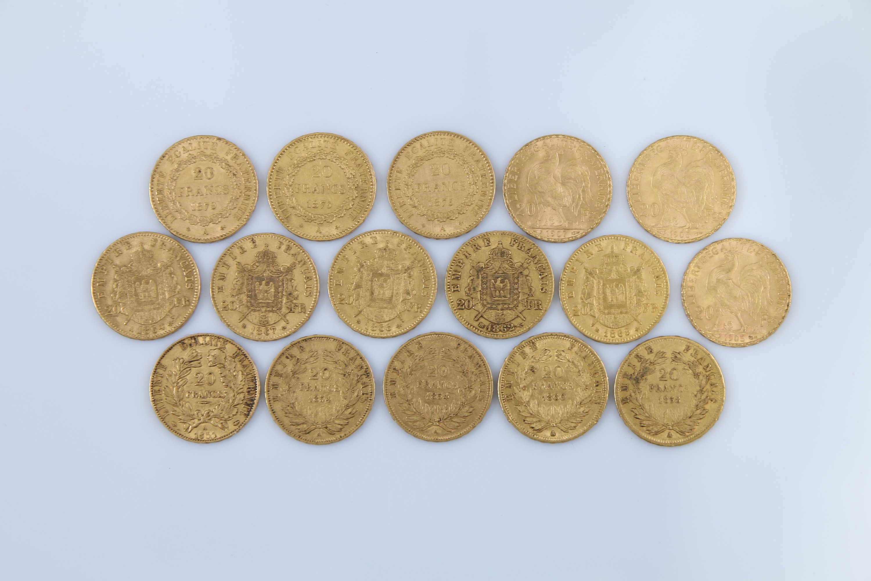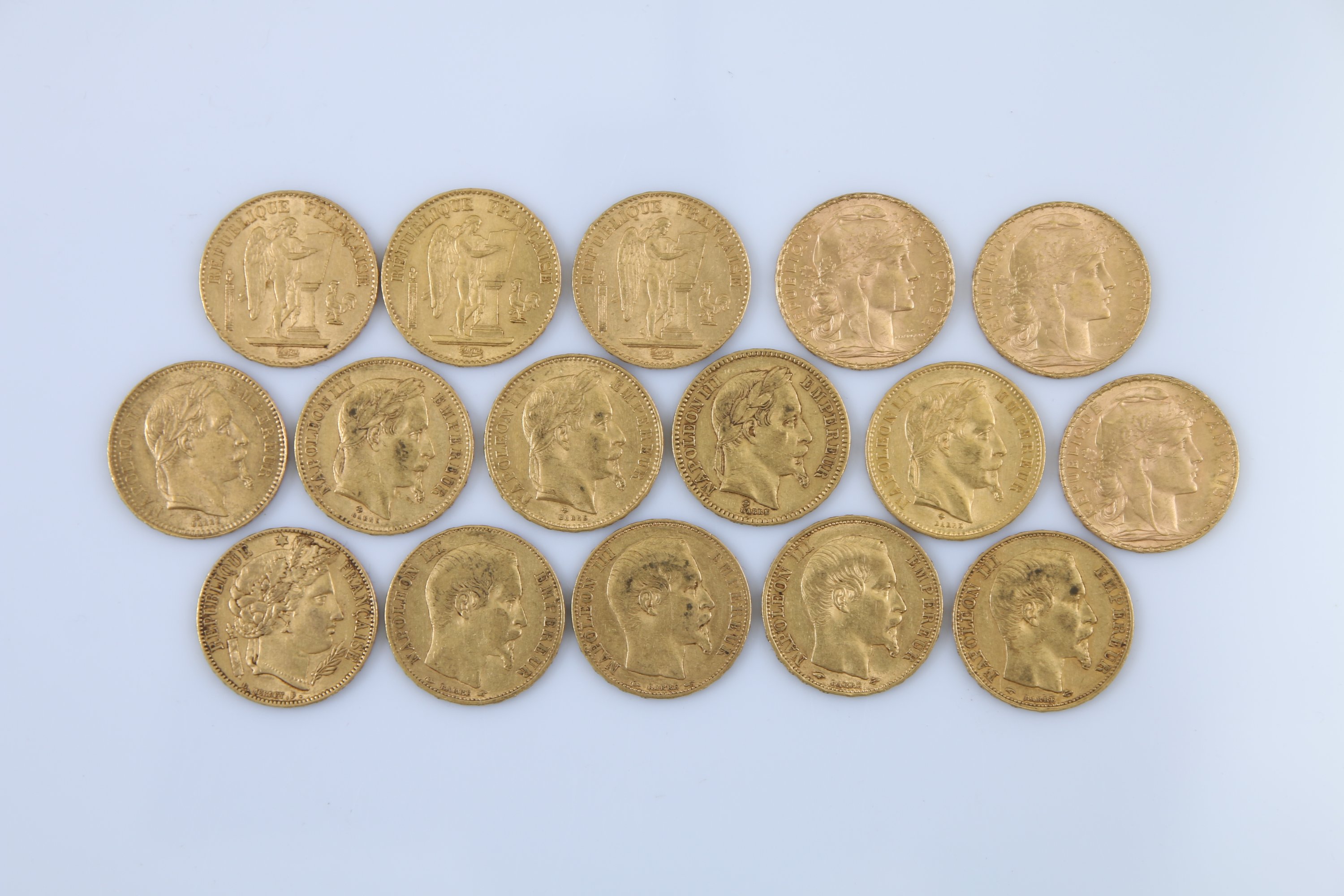 FRANCE. 16 PIECES de 20 FRANCS OR: