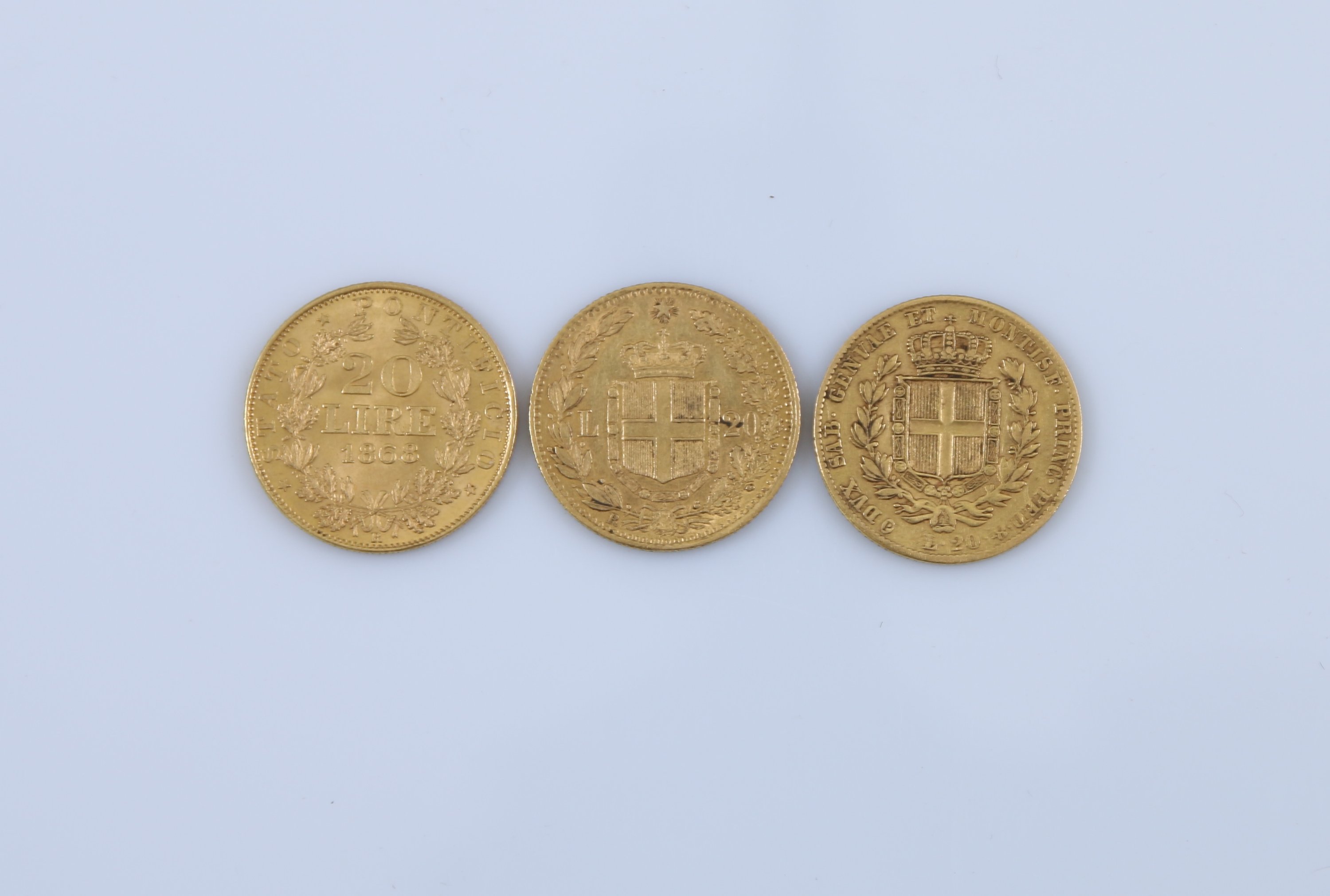 ITALIE et VATICAN. 3 PIECES de 20 LIRES OR: