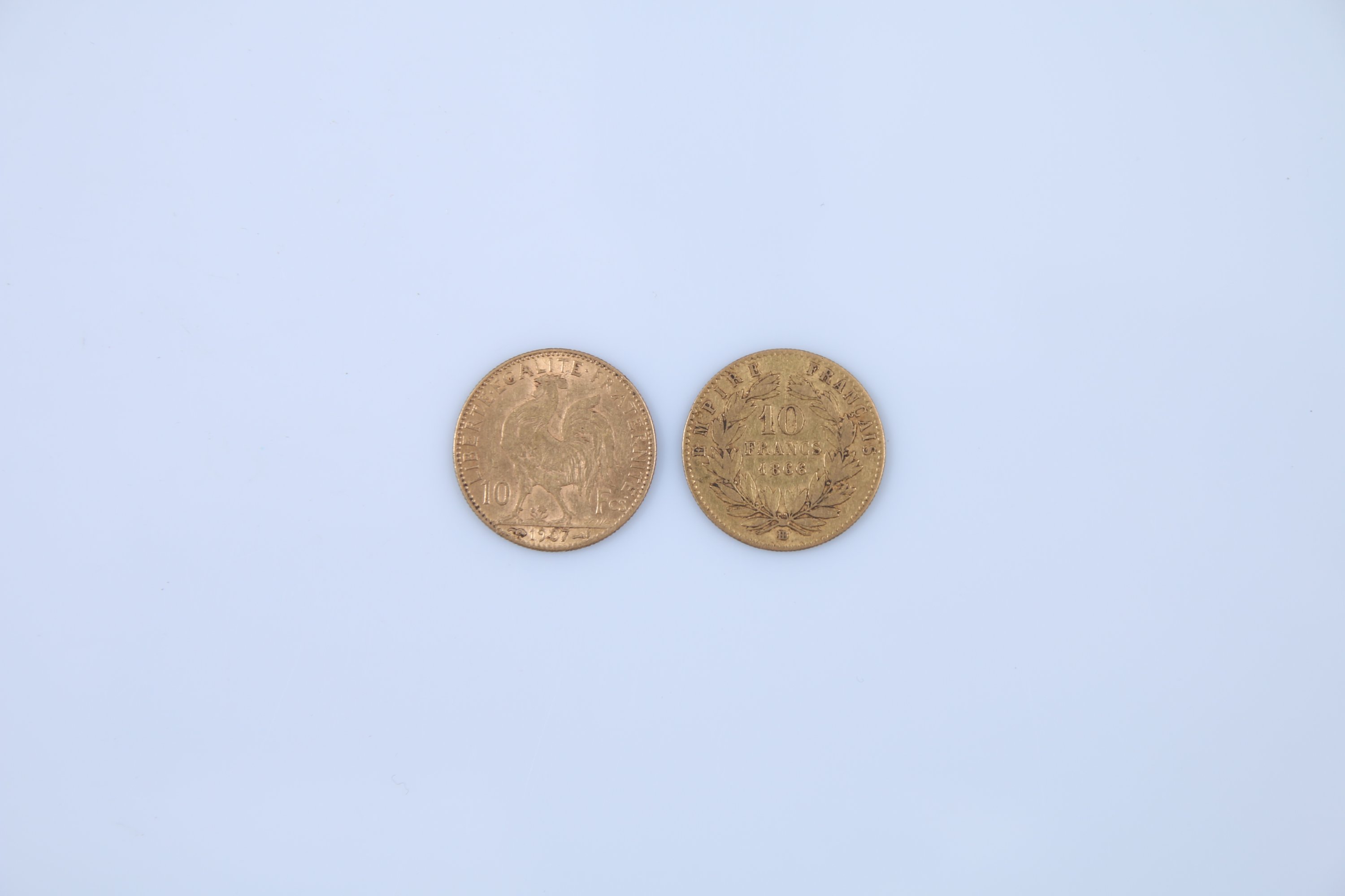 FRANCE. DEUX PIECES de 10 FRANCS OR: