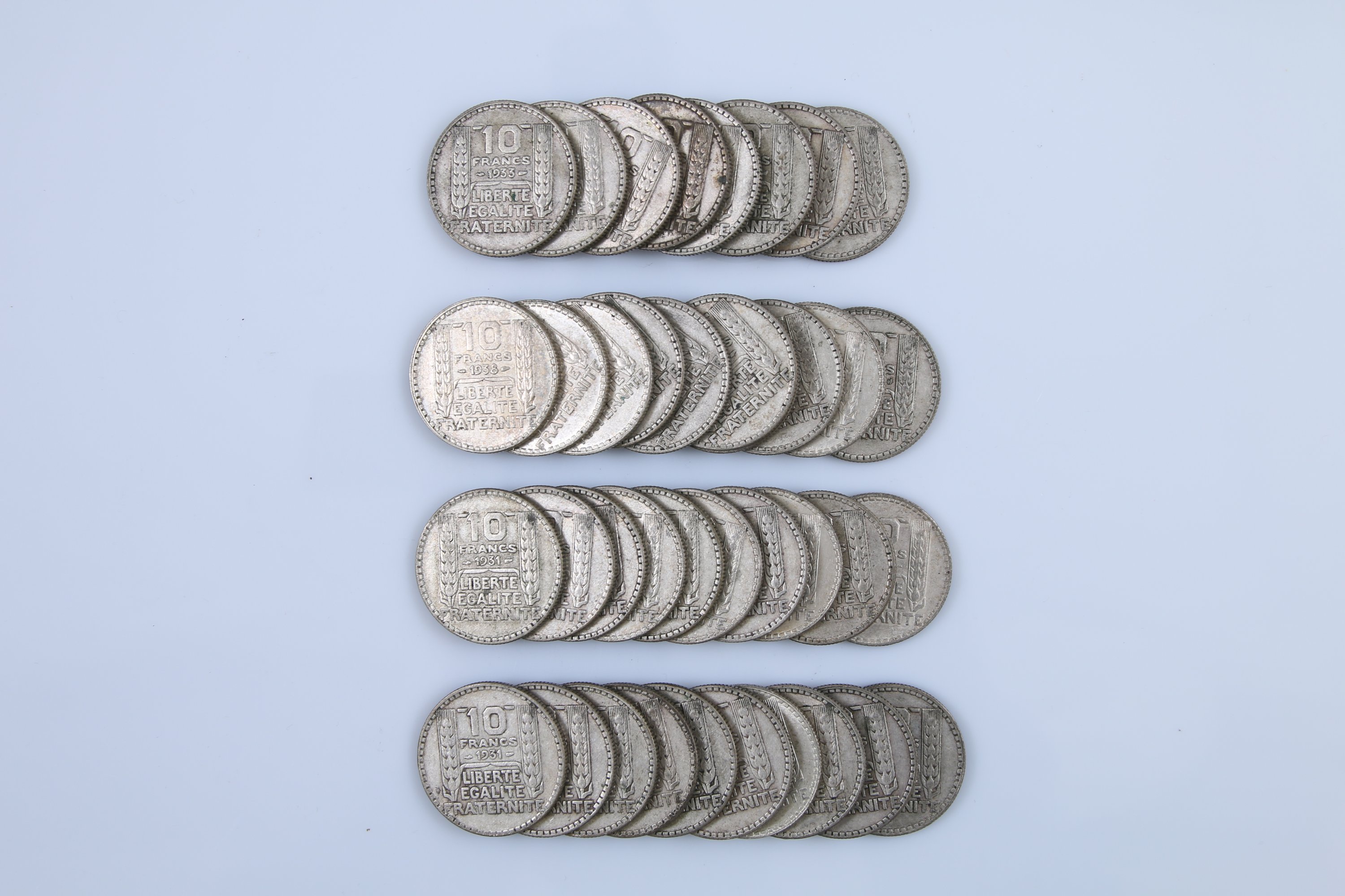 FRANCE. 39 PIECES de 10 FRANCS TURIN ARGENT. Poids: 425 g.