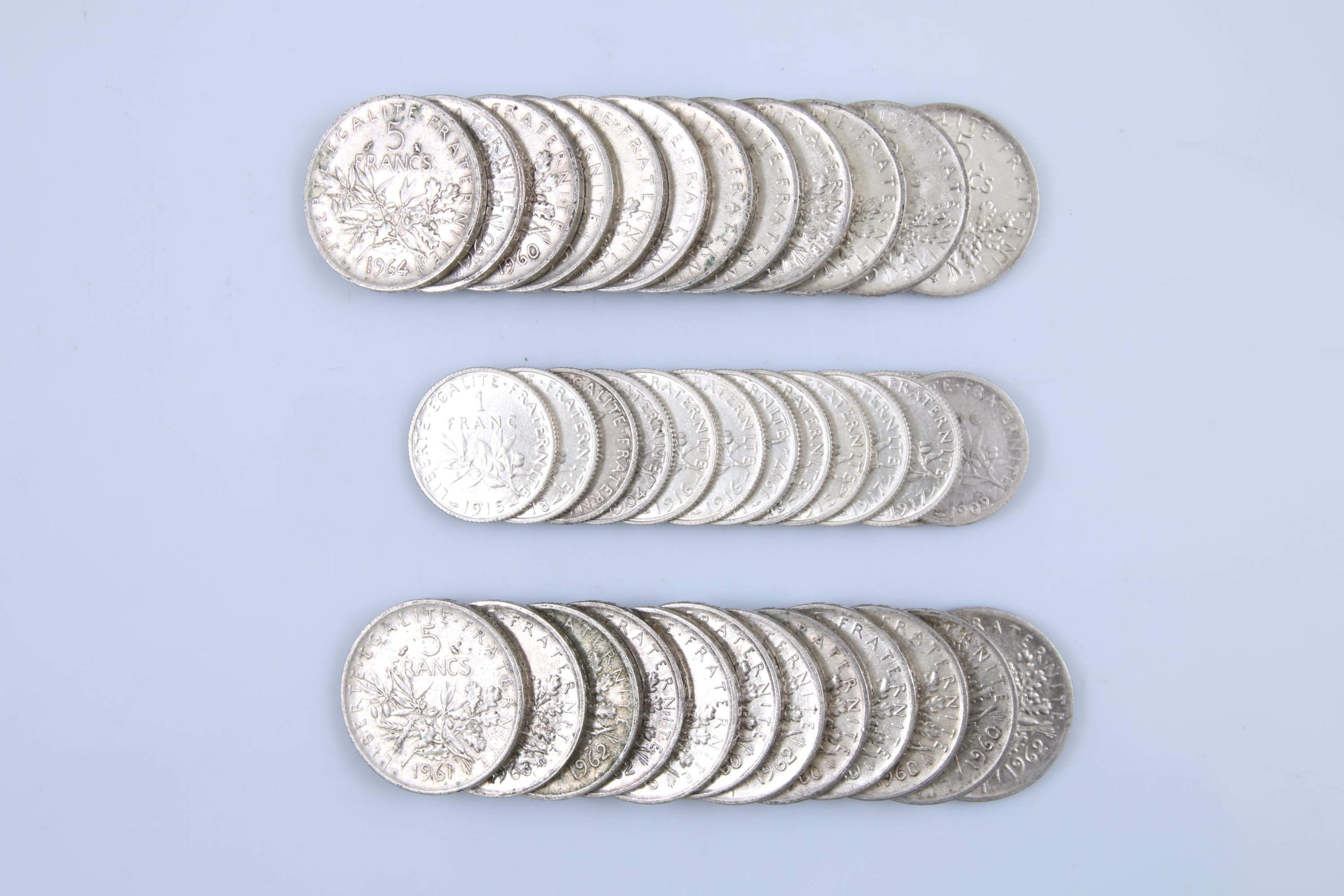 - 24 x 5 Francs: 1960 (9) ; 1961 (5) ; 1962 (4) ; 1963 (2) ; 1964 (2) ; 1965 (1) et 1966 (1).