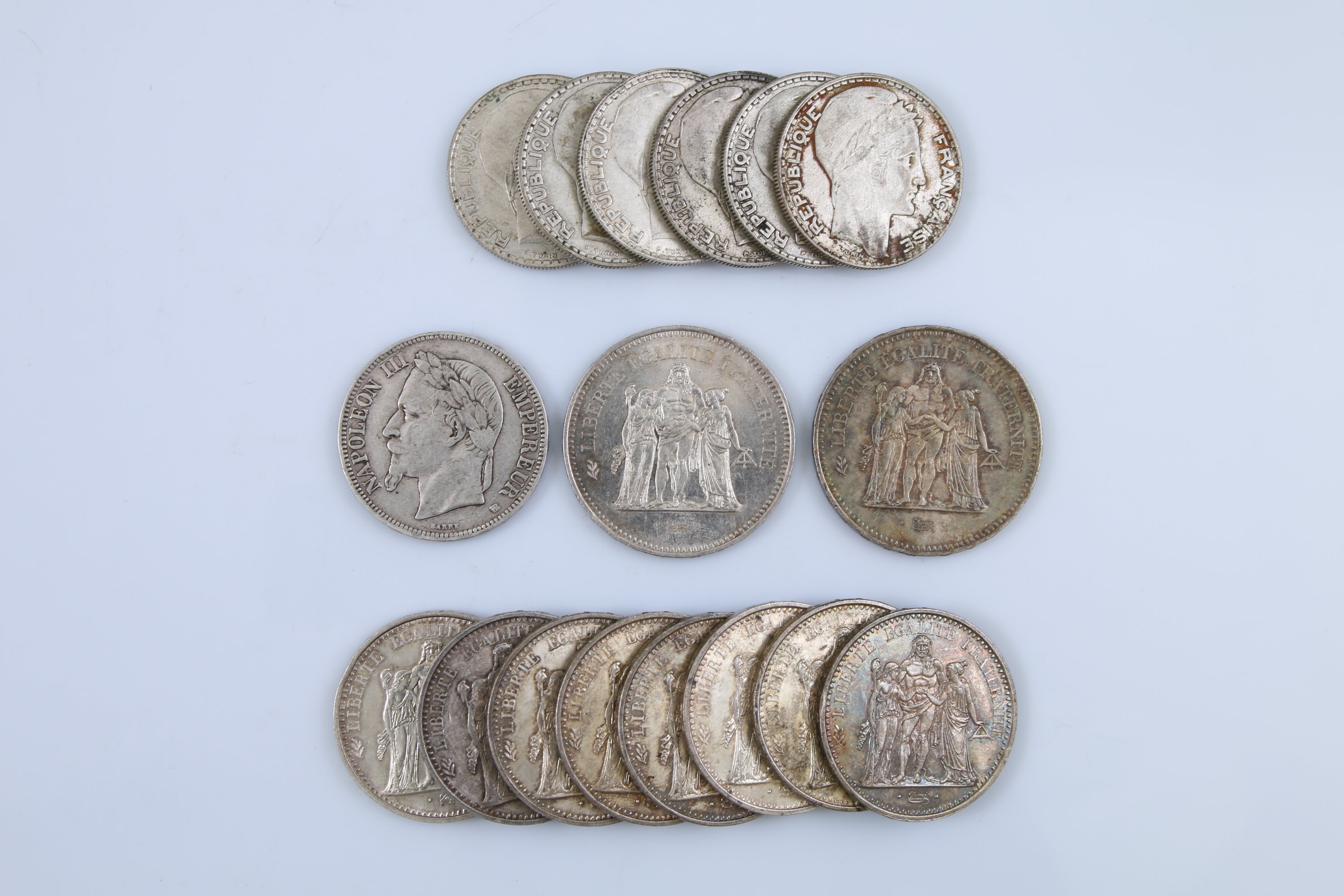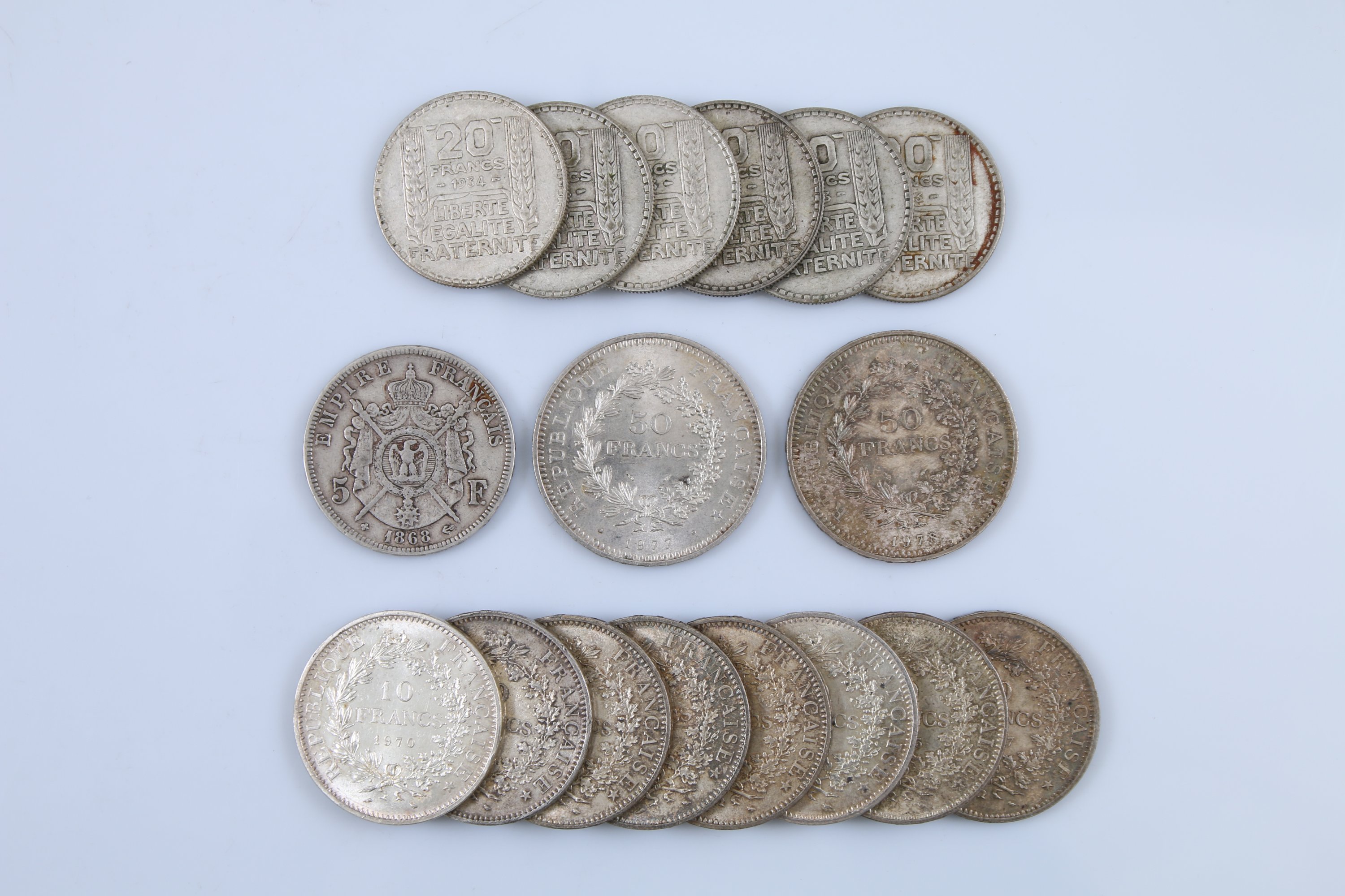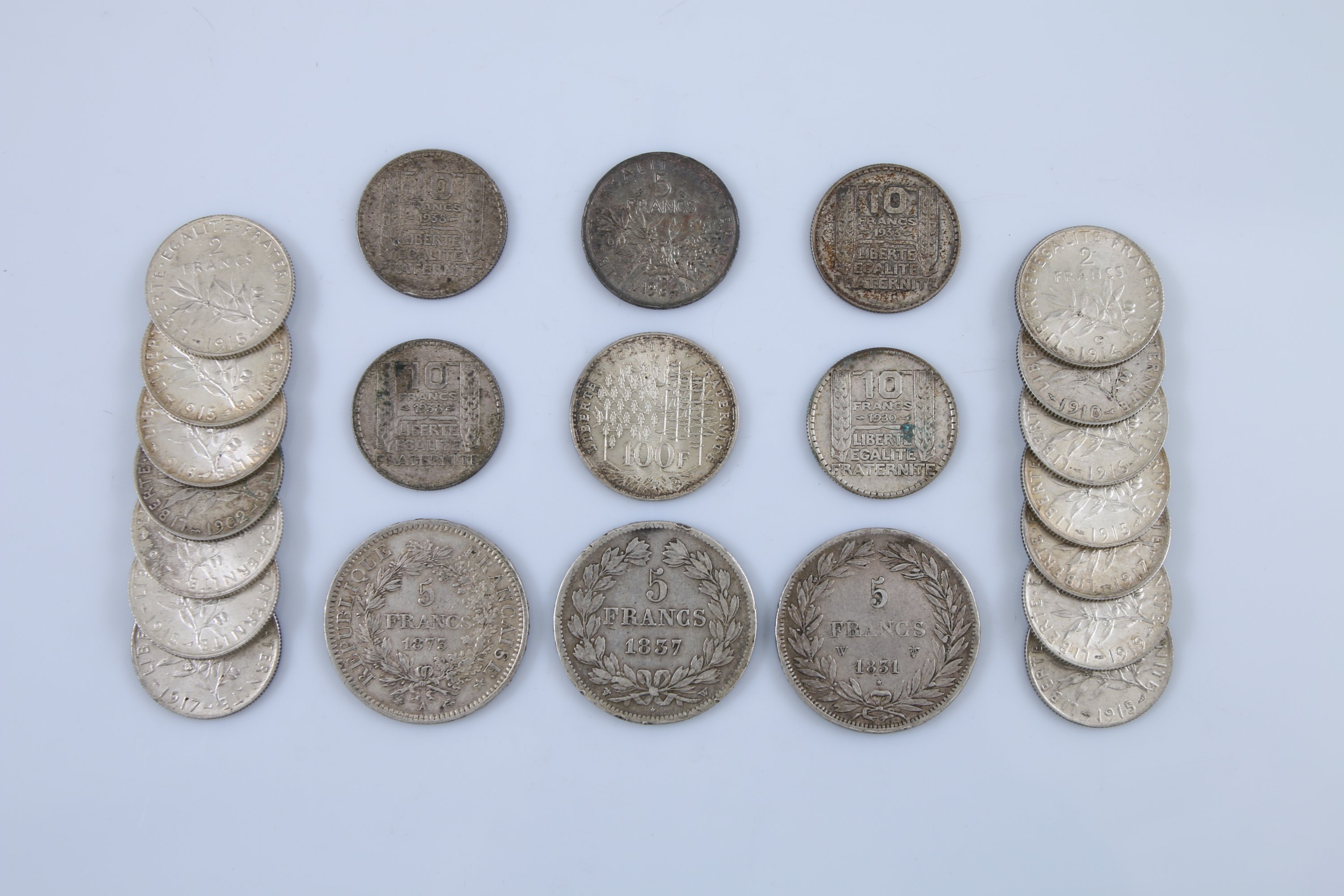 - 47 x 1 franc dont une type Louis-Philippe (date effacée), une type Napoléon III (date effacée), deux types "Cérès" 1895 et une date effacée et 43 types "Semeuse: 1901 (1), 1909 (2) 1912 (1), 1913 (2), 1914 (2), 1915 (8), 1916 (9), 1917 (9), 1918 (5), 1919 (3) et 1960 (1).