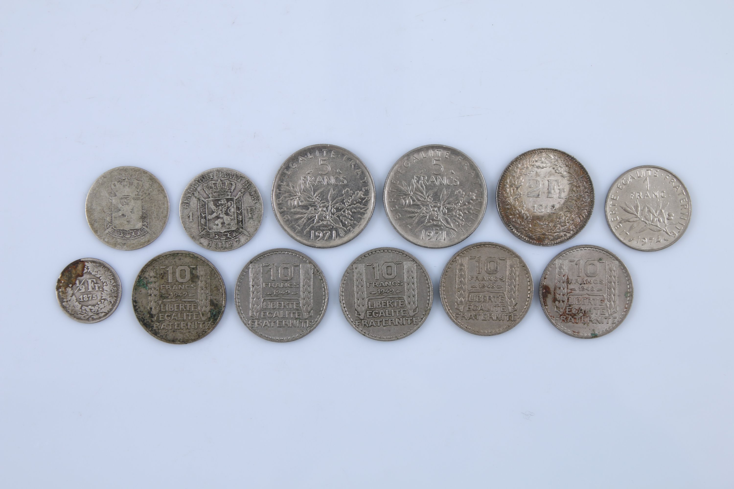 - France: 8 monnaies dont 5 x 10 francs "Turin" 1948 (2) et 1949 (3), 2 x 5 francs "Semeuse" 1971 et 1 franc 1974.
