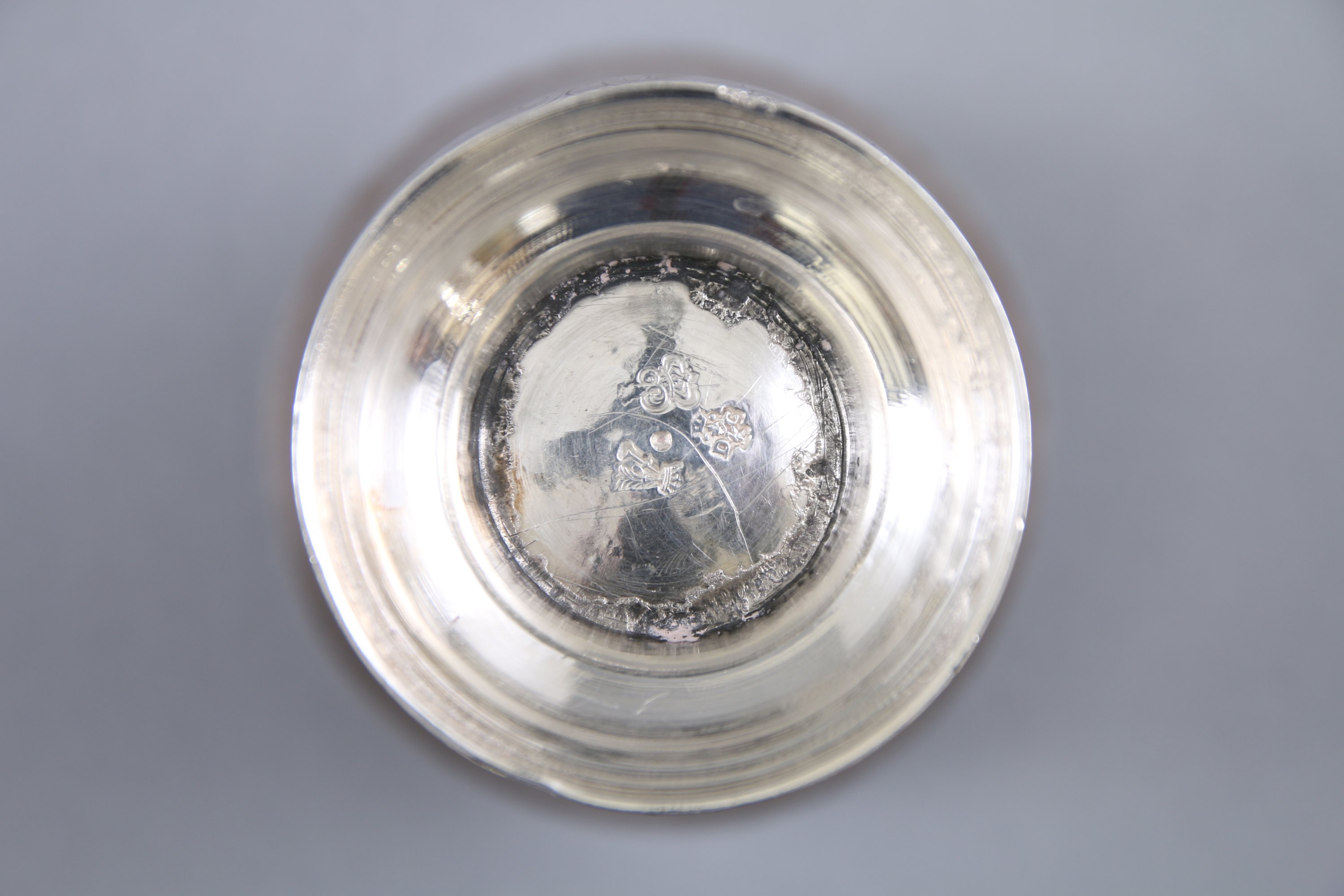 Poinçons apocryphes imitant poinçon de charge: "A couronné" 1780-1789. Poinçon de jurande: "P couronné 85". Poinçon de maître-orfèvre: Denis Colombier, reçu maître en 1774.